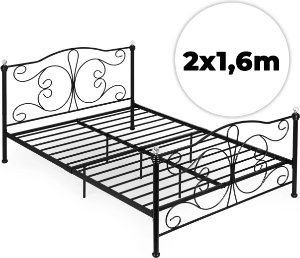 Design se vyznačuje elegantním ornamentálním čelem a nožním čelem a dekorativními křišťálovými koncovkami, které odrážejí světlo a dodávají ložnici šmrnc. Díky promyšleným spojům, šroubům a jistícím klipům lamel je rám stabilní a bezpečný pro každodenní používání.