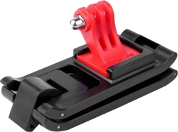 Držák je kompatibilní s širokou škálou akčních kamer a díky vícestupňovému nastavení háčků se přizpůsobí popruhům různé šířky a tloušťky. Silikonová podložka zlepšuje stabilitu a chrání materiál popruhu před oděrem, zatímco lehká a odolná konstrukce zajišťuje dlouhou životnost i při náročném používání.