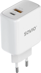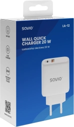 SAVIO LA-12 je univerzální nabíječka do sítě s maximálním výkonem 20 W, která zkracuje dobu nabíjení vašich chytrých telefonů, tabletů a sluchátek. Kombinace USB-C PD 3.0 a USB-A QC 3.0 zajišťuje optimální rychlost pro širokou škálu zařízení a inteligentně přizpůsobí výkon, i když váš telefon rychlé standardy nepodporuje.