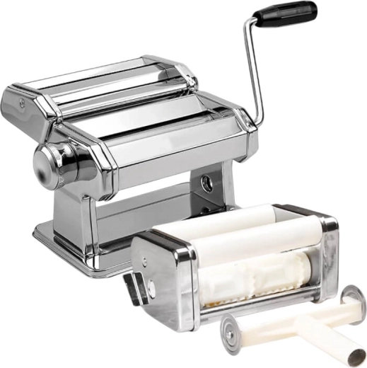 Ruční stroj na těstoviny Maestro MR-1679R přináší do vaší kuchyně autentickou výrobu čerstvých těstovin. Robustní nerezové provedení zaručuje dlouhou životnost a stabilitu při práci, zatímco plynulé nastavení tloušťky vám umožní přesně vyladit plát těsta podle receptu – od tenkých tagliolini po široké lasagne.