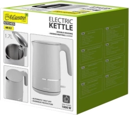 Stylová elektrická konvice MAESTRO s objemem 1,7 l a výkonem 1800 W přináší rychlý ohřev vody, bezpečné používání díky dvojité stěně a hygienické provedení s nerezovou ocelí 304. Praktická 360° otočná základna a elegantní šedé provedení skvěle zapadnou do každé kuchyně.