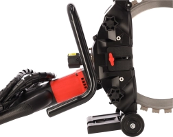 Ochranný kryt, vodní/chladicí systém a vodicí kolečka zvyšují bezpečnost, snižují prašnost a zlepšují vedení řezu.