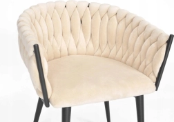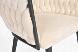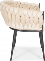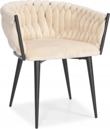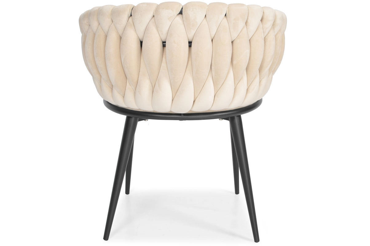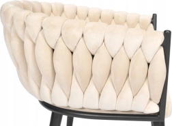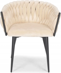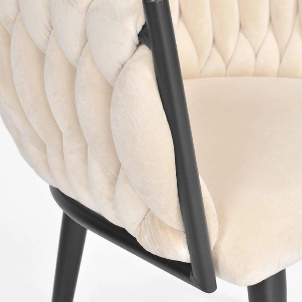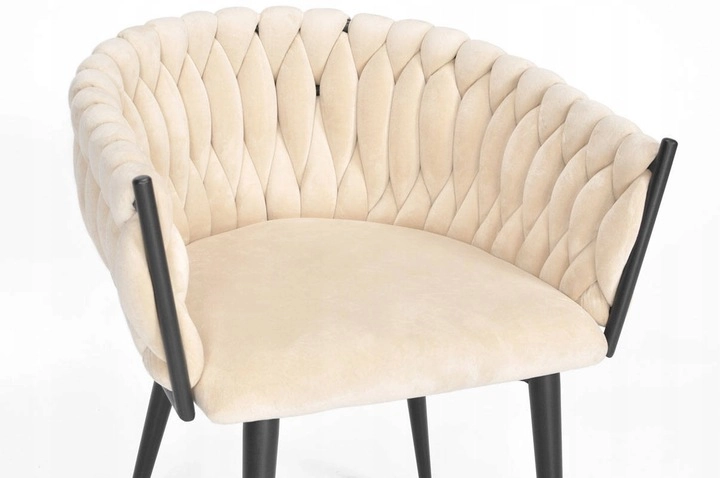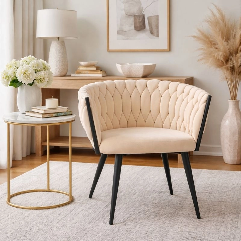 Objevte ikonické křeslo, které okamžitě pozvedne váš interiér. Měkký samet v teplém béžovém odstínu jemně odráží světlo a snadno se kombinuje s bílou, černou i dřevem. Černé kovové nohy zajišťují odolnost a současně podtrhují moderní charakter.