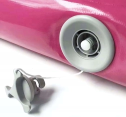 Díky přiložené pumpě je airtrack připraven za 4–6 minut. Praktické madla a spolehlivý ventil zjednodušují přenášení i vypouštění po tréninku.