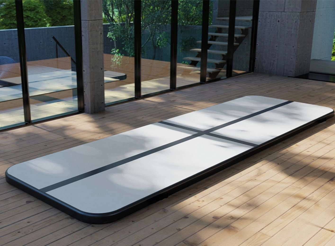 Díky lehké a skladné konstrukci si ji vezmete do tělocvičny, na zahradu i na cesty. Povrch je příjemně pružný, ale stabilní, takže napomáhá kontrole pohybu a ochraně kloubů. Součástí balení je přepravní taška, elektrická pumpa, základní opravná sada a návod.