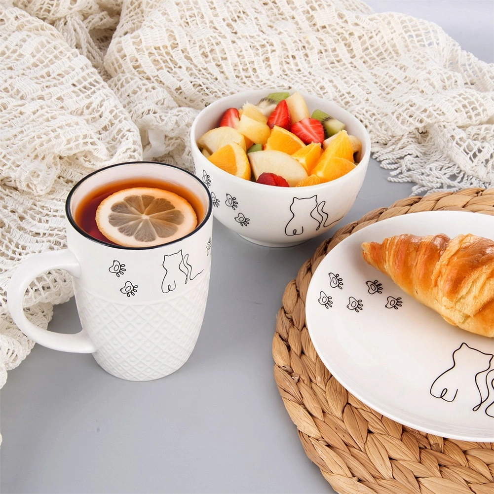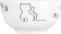 Jemná černobílá ilustrace kočky a tlapiček dodává misce originální charakter a snadno ladí s ostatním nádobím.