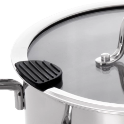 Poklice je vybavena integrovanou výlevkou a silikonovými prvky pro bezpečné slévání vody a snadné cezení bez dalších pomůcek. Hrnec je univerzální pro vaření, dušení i zapékání – připravíte v něm polévky, omáčky, guláše i jídla z jednoho hrnce a můžete je rovnou servírovat na stůl.