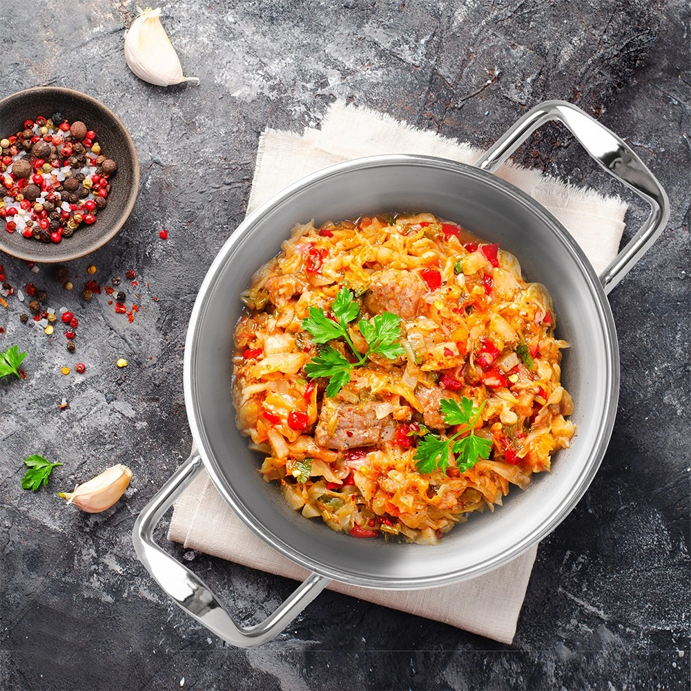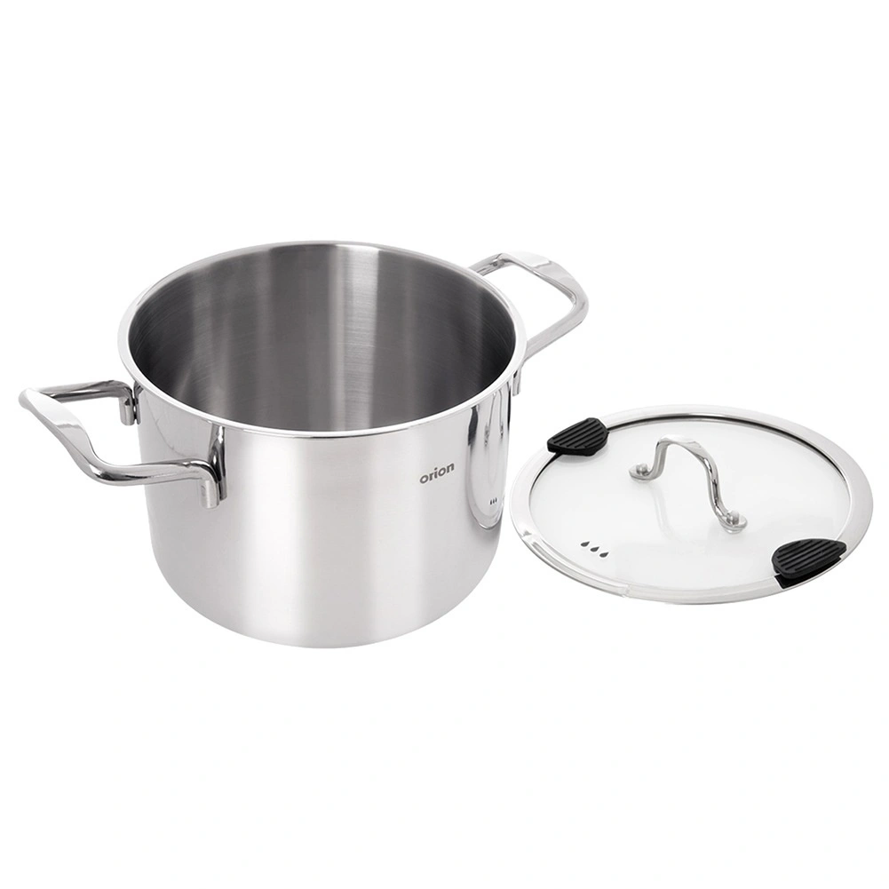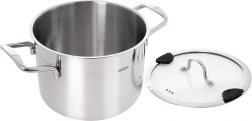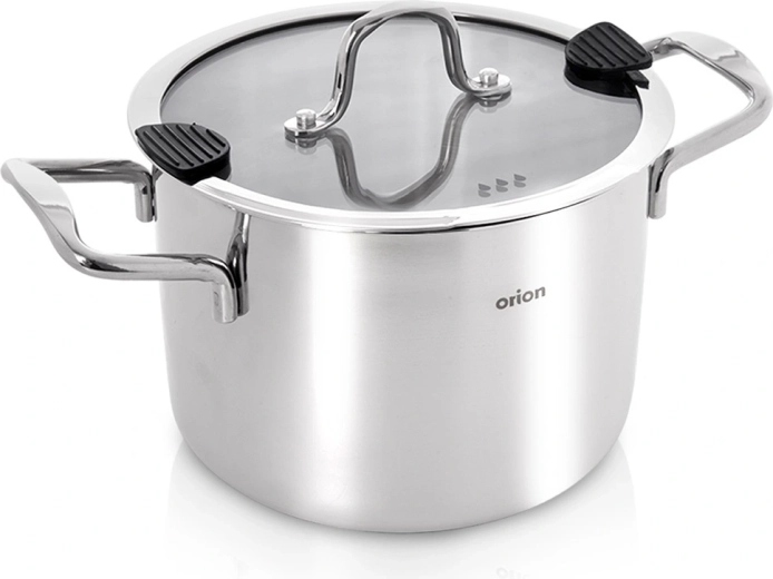 Kompaktní nerezový hrnec o objemu 2,3 l a průměru 16 cm je ideální pro každodenní vaření. Má odolnou konstrukci z nerezové oceli 304, skleněnou poklici s odvětráním a výlevkou a vícevrstvé dno s hliníkovým jádrem pro rovnoměrné zahřívání. Vhodný na plyn, elektřinu, sklokeramiku i indukci, do trouby do 200 °C a do myčky nádobí.