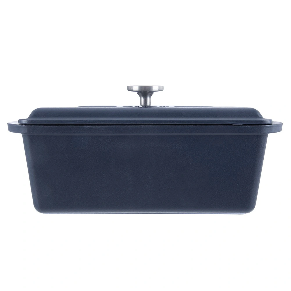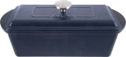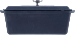 Vnější rozměry bez víka činí 35 × 14 × 11 cm, s víkem výška 16 cm, objem 3 l. Tělo je v černé barvě, víko v tmavě modré s nerezovým úchytem pro bezpečnou manipulaci. Forma má postranní madla pro pohodlné přenášení a díky odolnosti do 250 °C ji můžete použít v troubě i na sporáku.