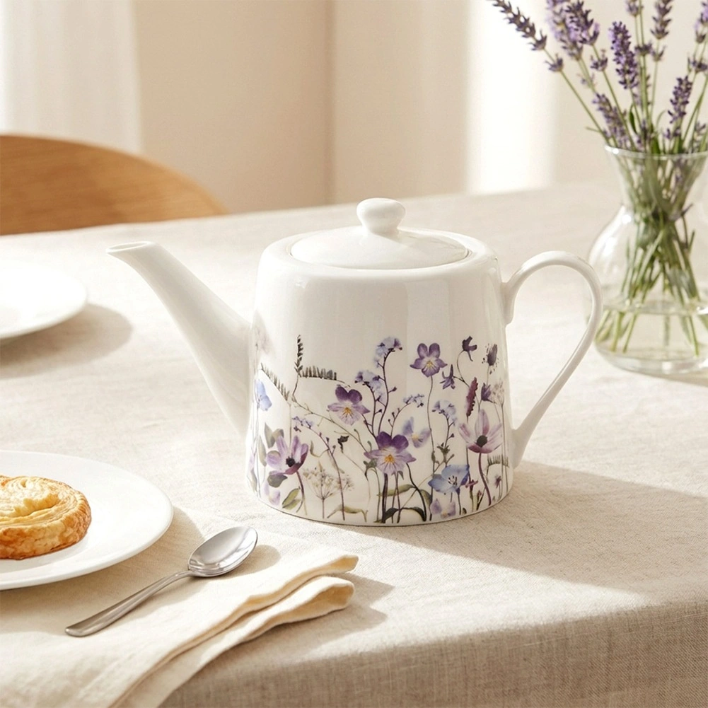 Objevte kouzlo servírování s porcelánovou konvicí LOUKA s něžným dekorem lučních květů. Díky objemu 1 l je perfektní pro rodinné snídaně i setkání s přáteli. Odnímatelné víčko pomáhá udržet nápoj déle teplý a chrání jej před nečistotami.