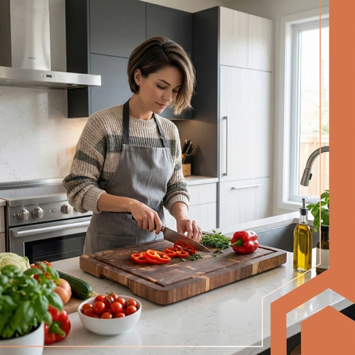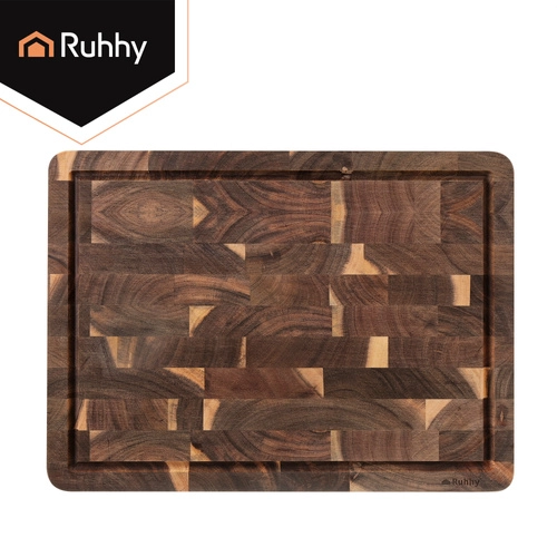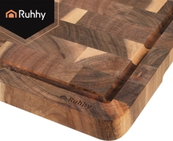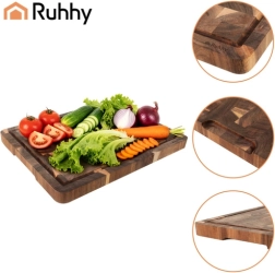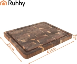 Robustní krájecí deska z akáciového dřeva o rozměrech 43 × 33 × 3 cm přináší kombinaci stability, odolnosti vůči vlhkosti a elegantního vzhledu. Díky koncepčnímu (end‑grain) provedení je šetrná k nožům, lépe maskuje řezy a vydrží intenzivní používání. Praktický obvodový žlábek na šťávy a integrované úchyty usnadňují práci i servírování.
