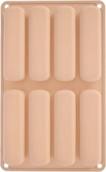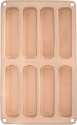 Tato béžová silikonová forma je ideální pro přípravu podlouhlých piškotů do tiramisu, dezertů do skleniček i klasických sušenek. Rozměry formy jsou 28 × 17 × 2 cm a každý kus má 11,5 × 3 × 2 cm. Materiál je lehký, pružný a odolný, což zaručuje rovnoměrné pečení a snadné vyklopení bez přilepování.