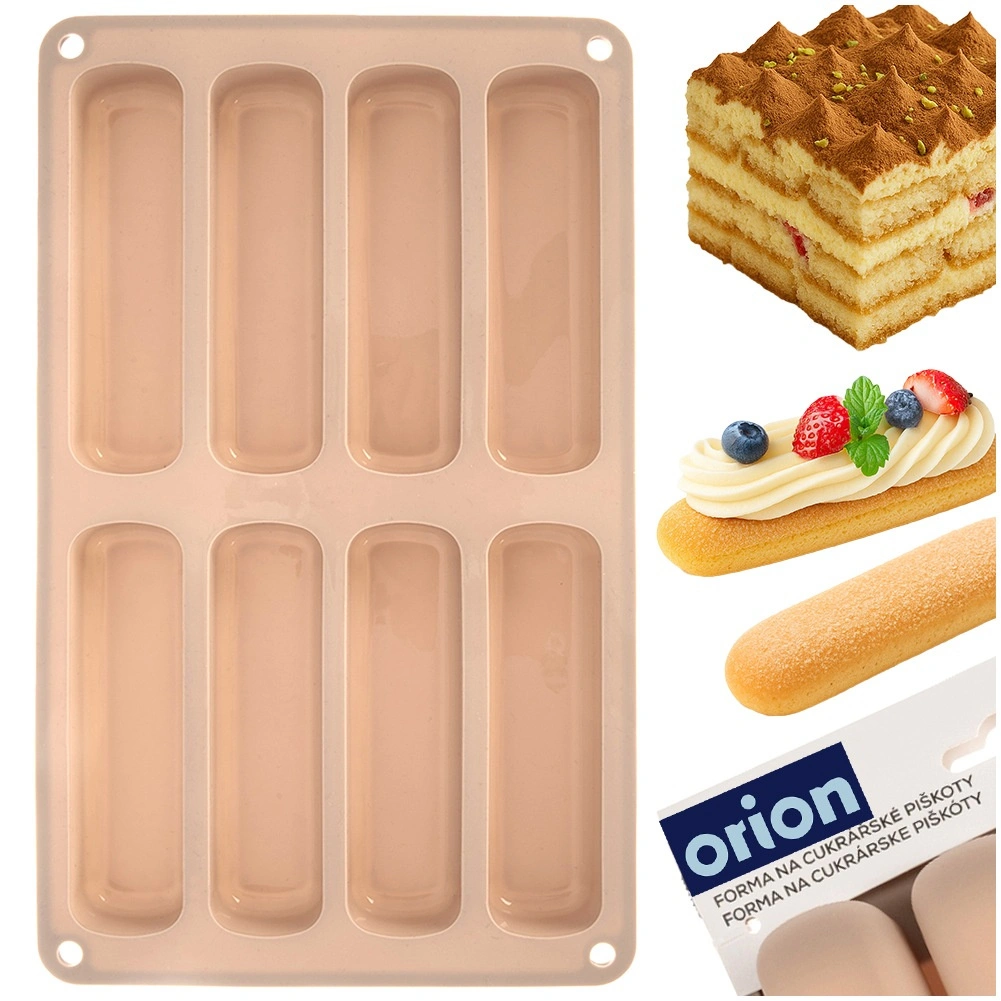 Forma s osmi podlouhlými dutinami peče rovnoměrně a vytváří konzistentní porce vhodné do tiramisu, dezertů i na zdobení.