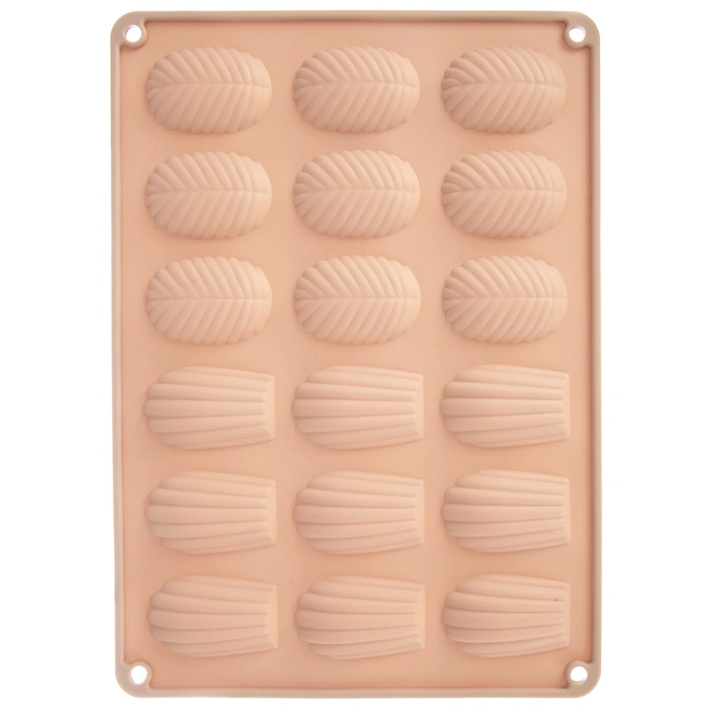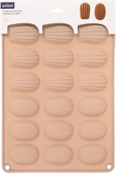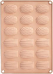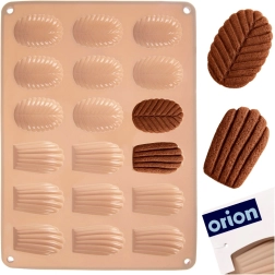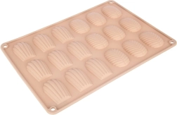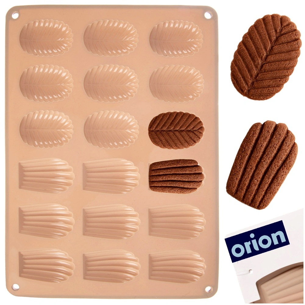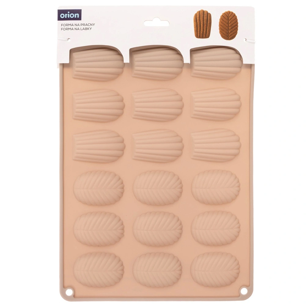 Praktická silikonová forma v béžové barvě pro přípravu až 18 kusů domácích sušenek, pralinek a čokoládek ve tvaru mušliček (madeleinek) a listů. Díky nepřilnavému, flexibilnímu silikonu se dezerty snadno vyklápějí, forma je odolná od −40 °C do +200 °C, vhodná do trouby, mikrovlnky i mrazáku a lze ji mýt v myčce nádobí.