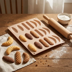 Tato béžová silikonová forma je ideální pro domácí pečení sušenek, mini dortíků i výrobu pralinek a nepečených dezertů. Díky pružnému a nepřilnavému materiálu jde hotové kousky snadno vyklopit bez poškození tvaru a formu následně pohodlně umyjete.