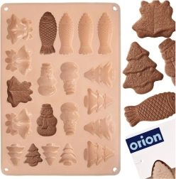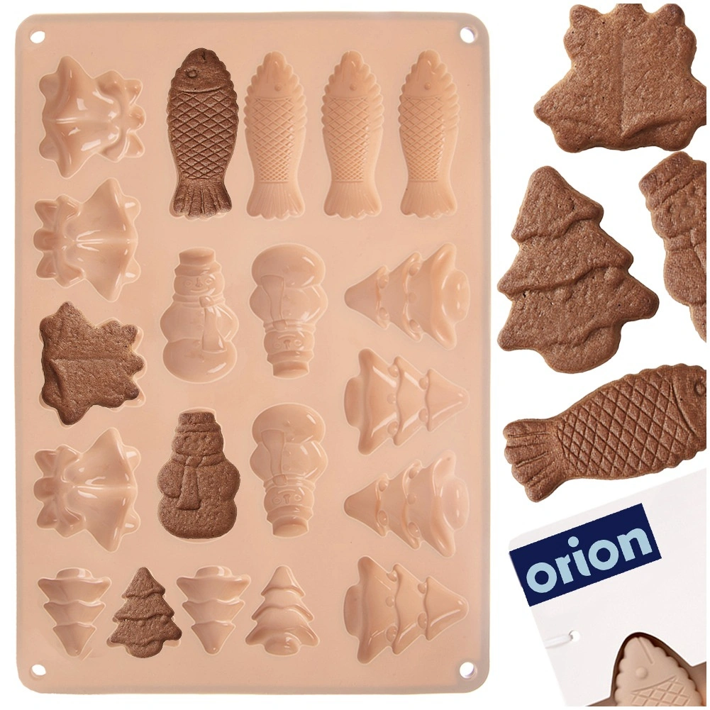 Praktická silikonová forma pro pečení a chlazení vám umožní vytvořit až 20 kousků sladkostí v pěti zimních motivech – stromeček, zvonek, sněhulák a ryba. Díky flexibilnímu silikonu se tvary snadno vyklápí, nic se nelepí a forma je vhodná do trouby, mikrovlnky i mrazáku. Navíc ji jednoduše umyjete v myčce nádobí.