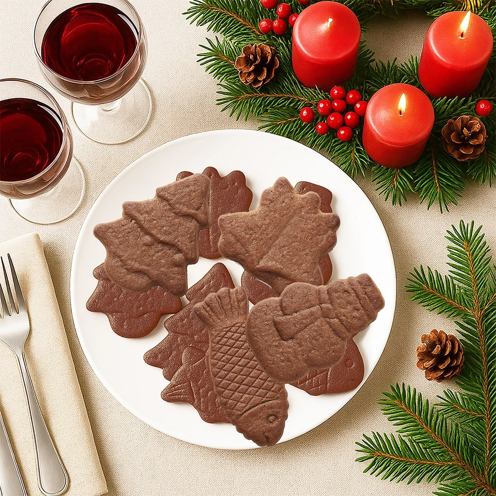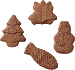 Forma nabízí stromečky ve dvou velikostech, sněhuláka, zvonky a rybu – ideální na sušenky i čokoládky se slavnostním vzhledem.