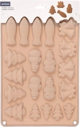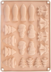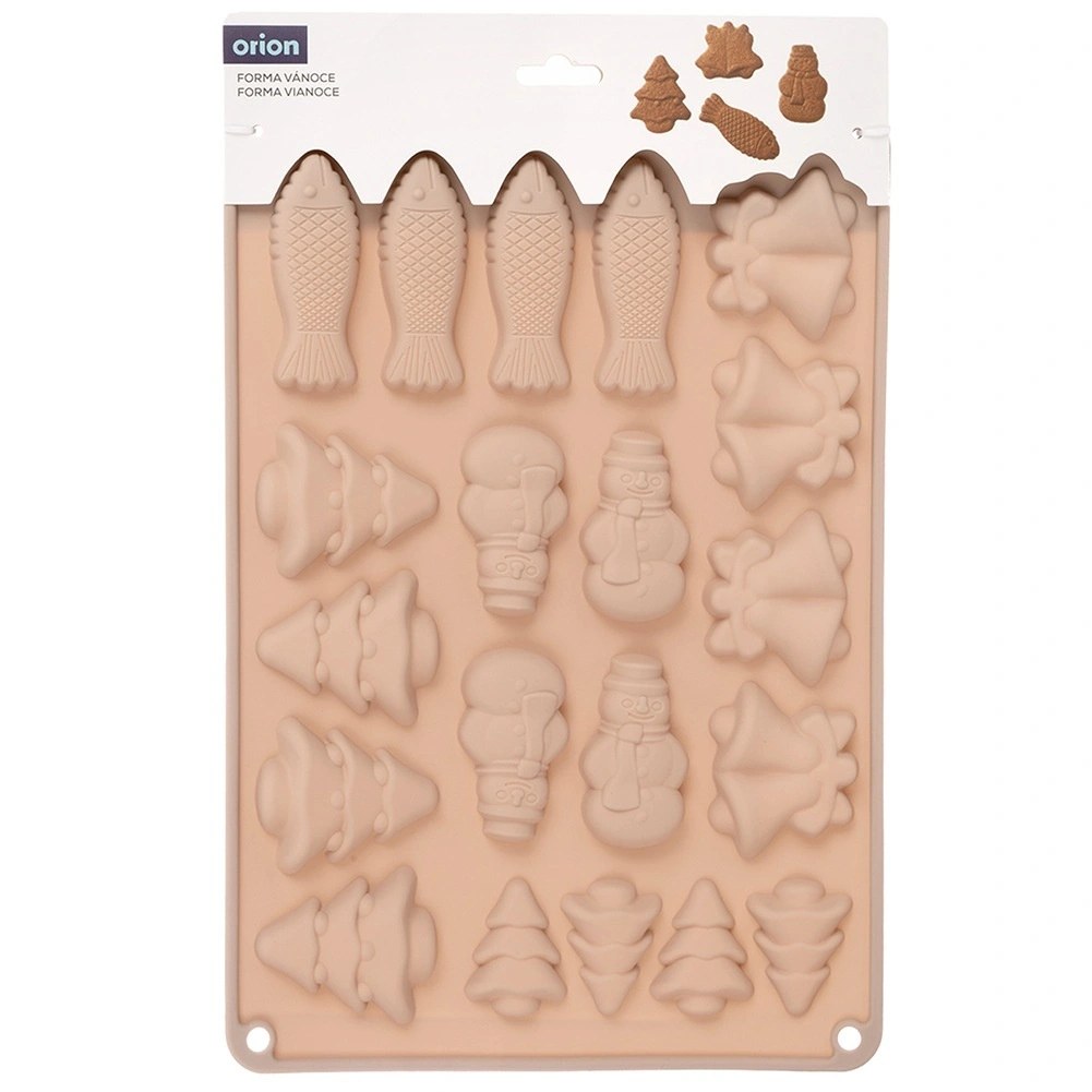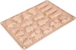 Tato béžová silikonová forma o rozměrech 34 × 24,5 × 1 cm je ideální pro výrobu vánočních sušenek, perníčků, čokoládek i pralinek. Vysoce kvalitní silikon zaručuje snadné vyjmutí bez přilepení a rovnoměrné propečení či ztuhnutí. Z jedné dávky připravíte až 20 kousků ve 5 různých tvarech.