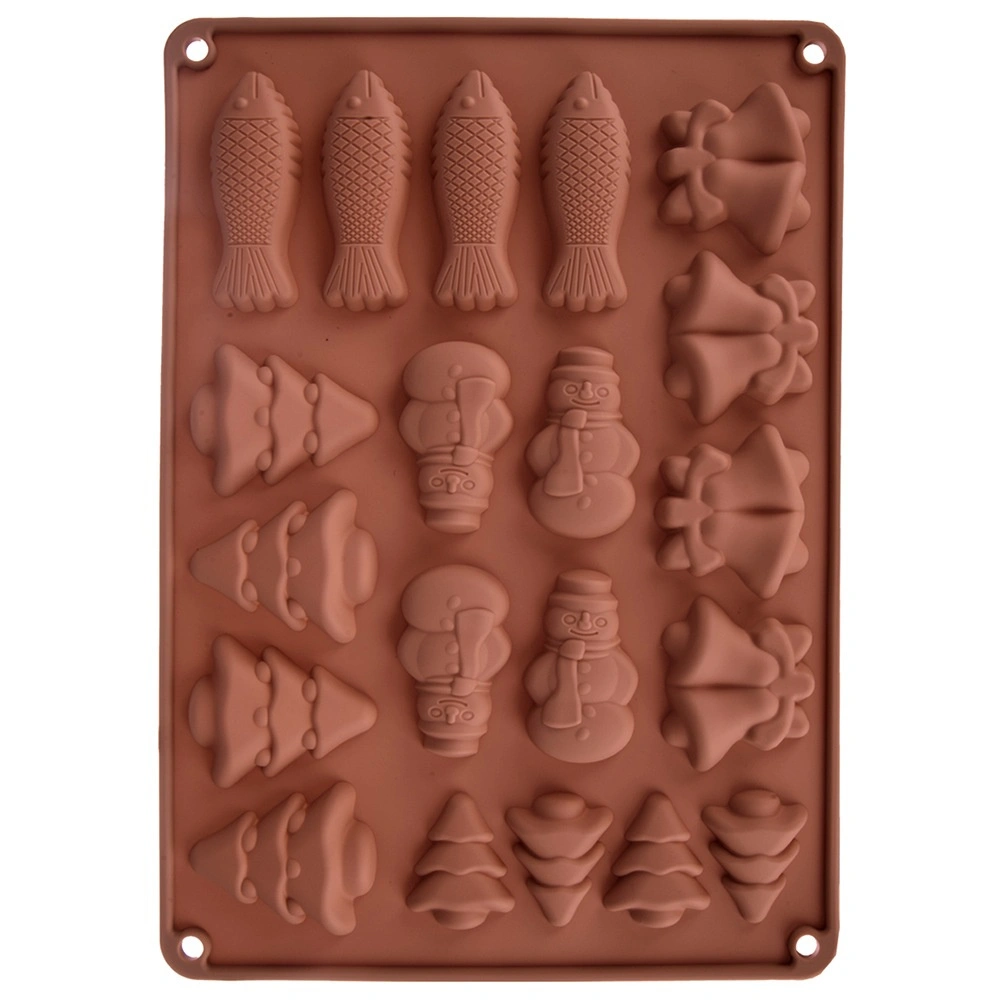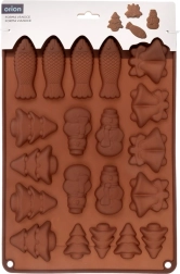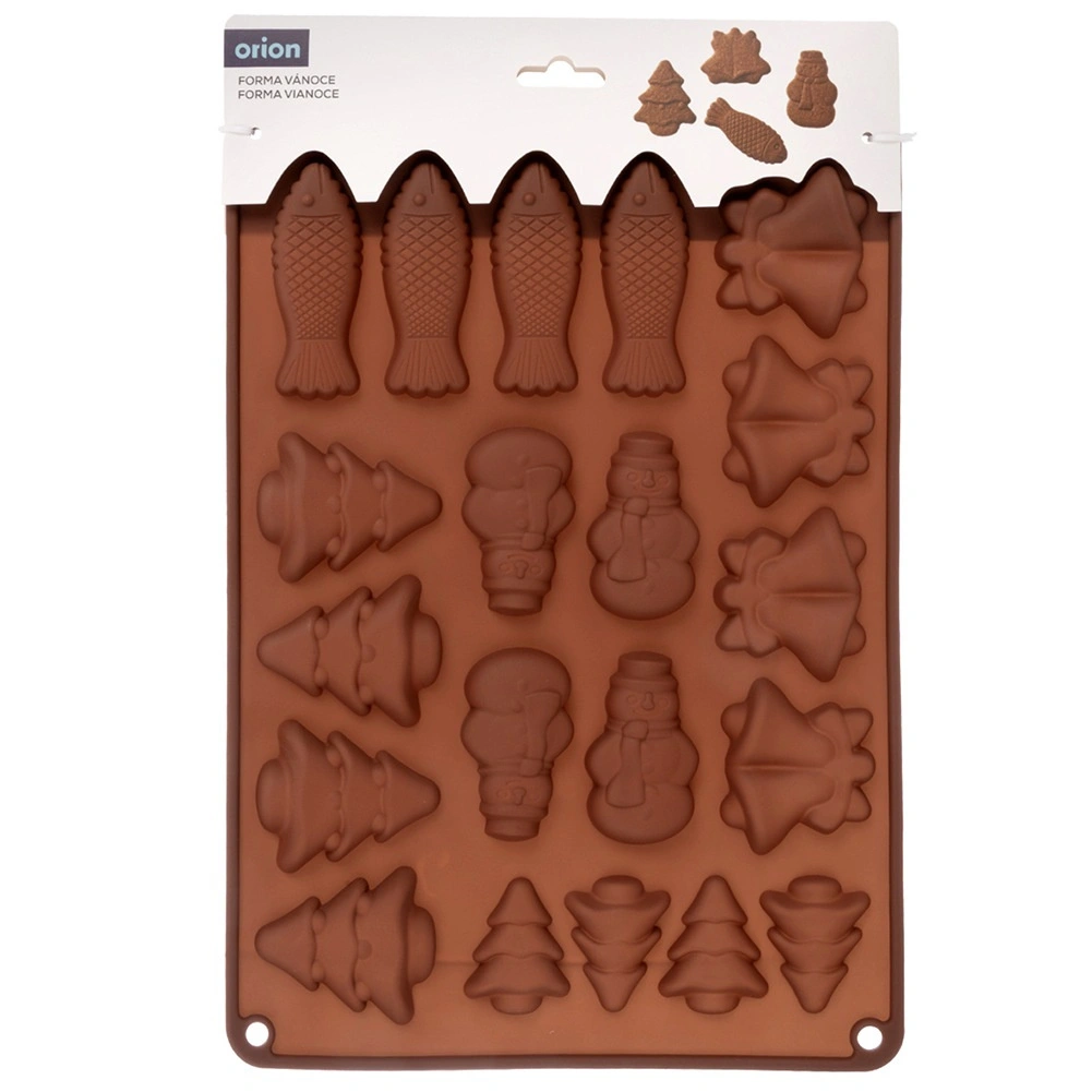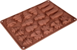Praktická silikonová forma pro snadné pečení a lití čokolády v zimních motivech. Díky 20 dutinám připravíte najednou sladkosti v pěti tvarech – stromeček, bałwan (sněhulák), zvonek a ryba. Materiál je nepřilnavý, pružný a odolný vůči teplotám -40 až +200 °C, vhodný do trouby, mikrovlnky i mrazáku a lze jej mýt v myčce.