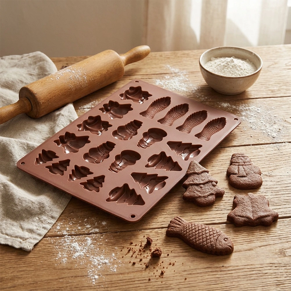 Tato hnědá silikonová forma je ideální pro přípravu křehkých sušenek, perníčků, pralinek i domácích čokoládek. Díky flexibilnímu nepřilnavému povrchu se hotové kousky snadno vyklápějí bez nutnosti vymazání či podsypání moukou. Forma nepohlcuje pachy ani chutě a šetří místo v kuchyni.