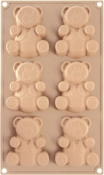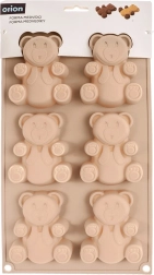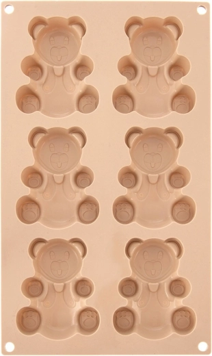 Praktická silikonová forma v béžové barvě vytvoří až 6 roztomilých medvídků o rozměru 8,5 × 7 cm. Je flexibilní, nepřilnavá a odolná vůči teplotám od -40 °C do +200 °C. Hodí se do trouby, mikrovlnky i mrazáku a lze ji mýt v myčce.