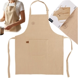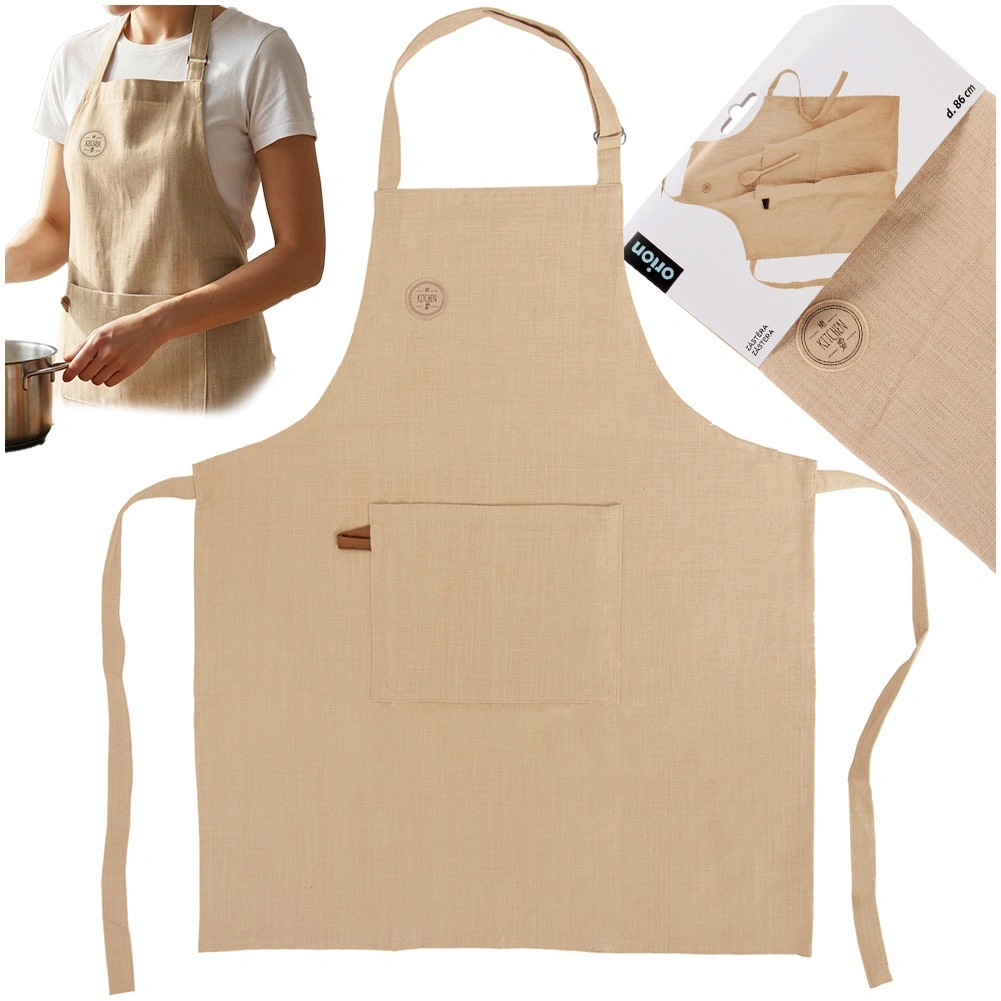 Tato odolná bavlněná zástěra v univerzální béžové barvě se postará o čistotu a pohodlí při každodenní práci v kuchyni i u grilu. Díky nastavitelnému popruhu s přezkou a dlouhým šňůrkám ji snadno přizpůsobíte své postavě.