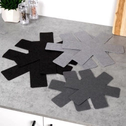 Měkký filc tlumí kontakt mezi nádobím a chrání nepřilnavé povrchy při stohování i manipulaci. Ideální pro každodenní používání.