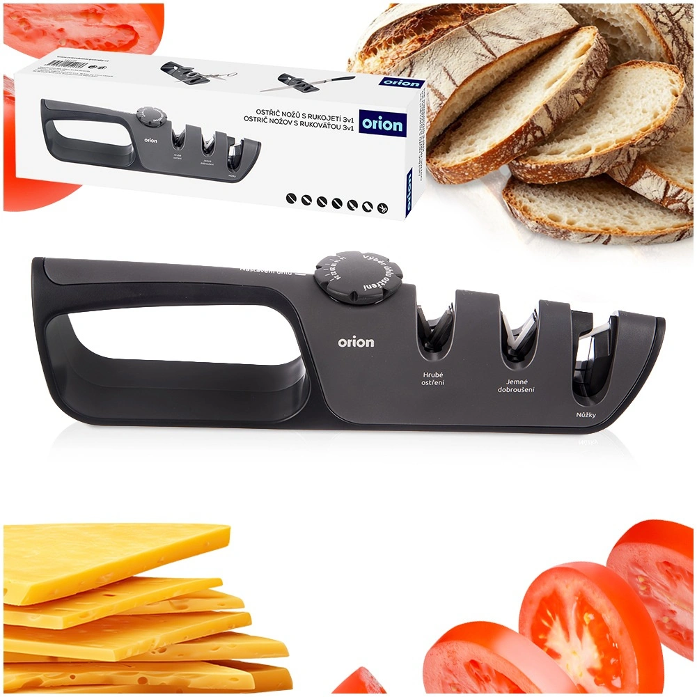 Udržujte své kuchyňské nože vždy perfektně ostré s tímto třífázovým ostřičem s plynulým nastavením úhlu 14–24°. Nabízí univerzální použití pro ocelové i keramické nože, tři brusné zóny pro hrubé, střední a jemné doostření a stabilní, bezpečnou konstrukci s ergonomickou rukojetí a protiskluzovou základnou.