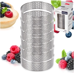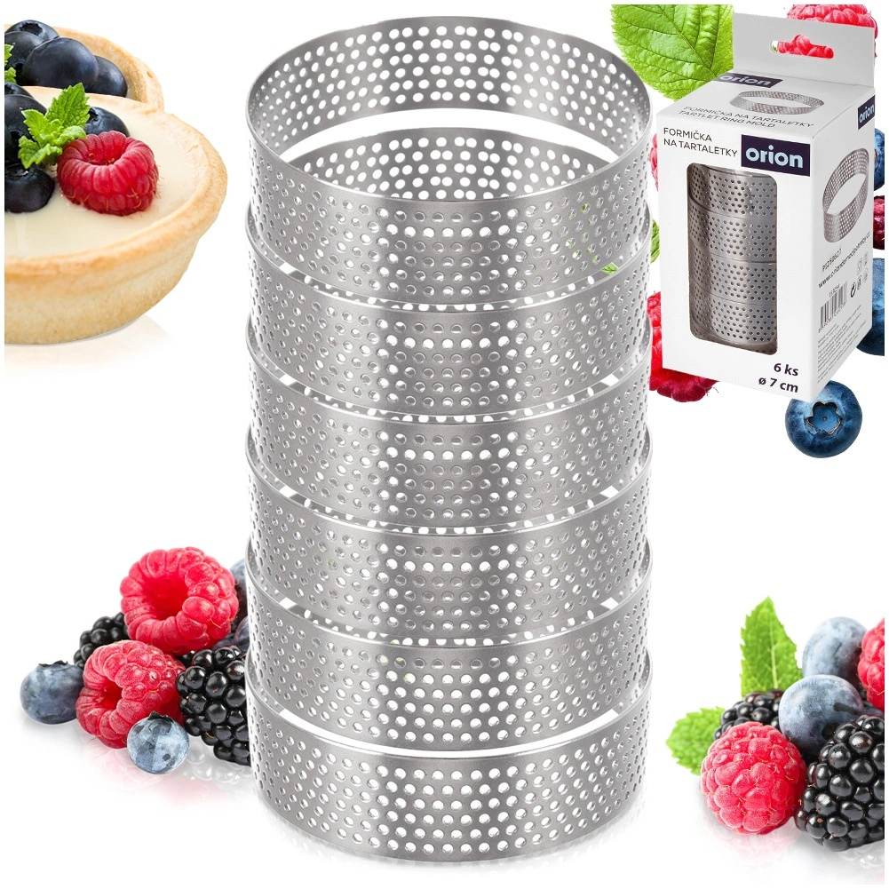 Praktická sada 6 kusů perforovaných ráfků na tartaletky o průměru 7 cm a výšce 2 cm pro rovnoměrné pečení, křupavé korpusy a snadné vyjímání bez mastění. Nerezová ocel zajišťuje odolnost a tvarovou stálost, perforace podporuje odvod páry a dokonalé propečení sladkých i slaných tartaletek. Vhodné do myčky nádobí.