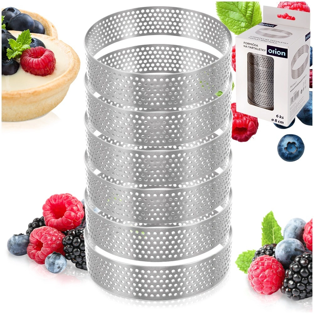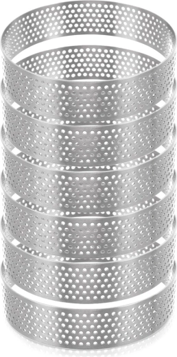 Ráfky jsou vyrobeny z odolné nerezové oceli, která dobře snáší vysoké teploty a zaručuje dlouhou životnost. Každý ráfek má průměr 8 cm a výšku 2 cm – ideální rozměr pro elegantní mini dezerty, tartaletky s krémem, ovocem či slané koláčky.