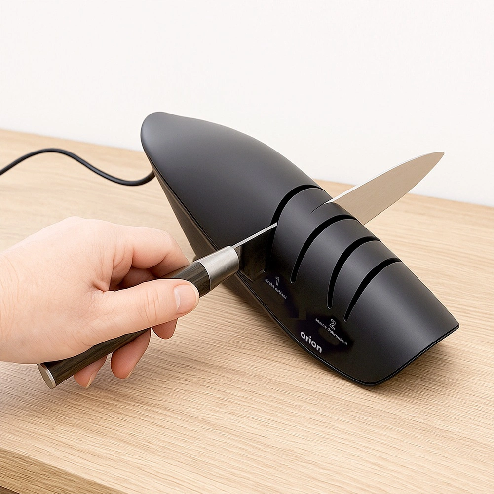 Elektrická ostřička 2v1 je navržena pro rychlé, přesné a bezpečné broušení kuchyňských nožů. Dva samostatné sloty se stupni 1 a 2 vám umožní nejprve ostří obnovit a následně jej dohladit pro rovnoměrnou a ostrou řeznou hranu. Diamantové brusivo zajišťuje dlouhou životnost a konzistentní výsledky.