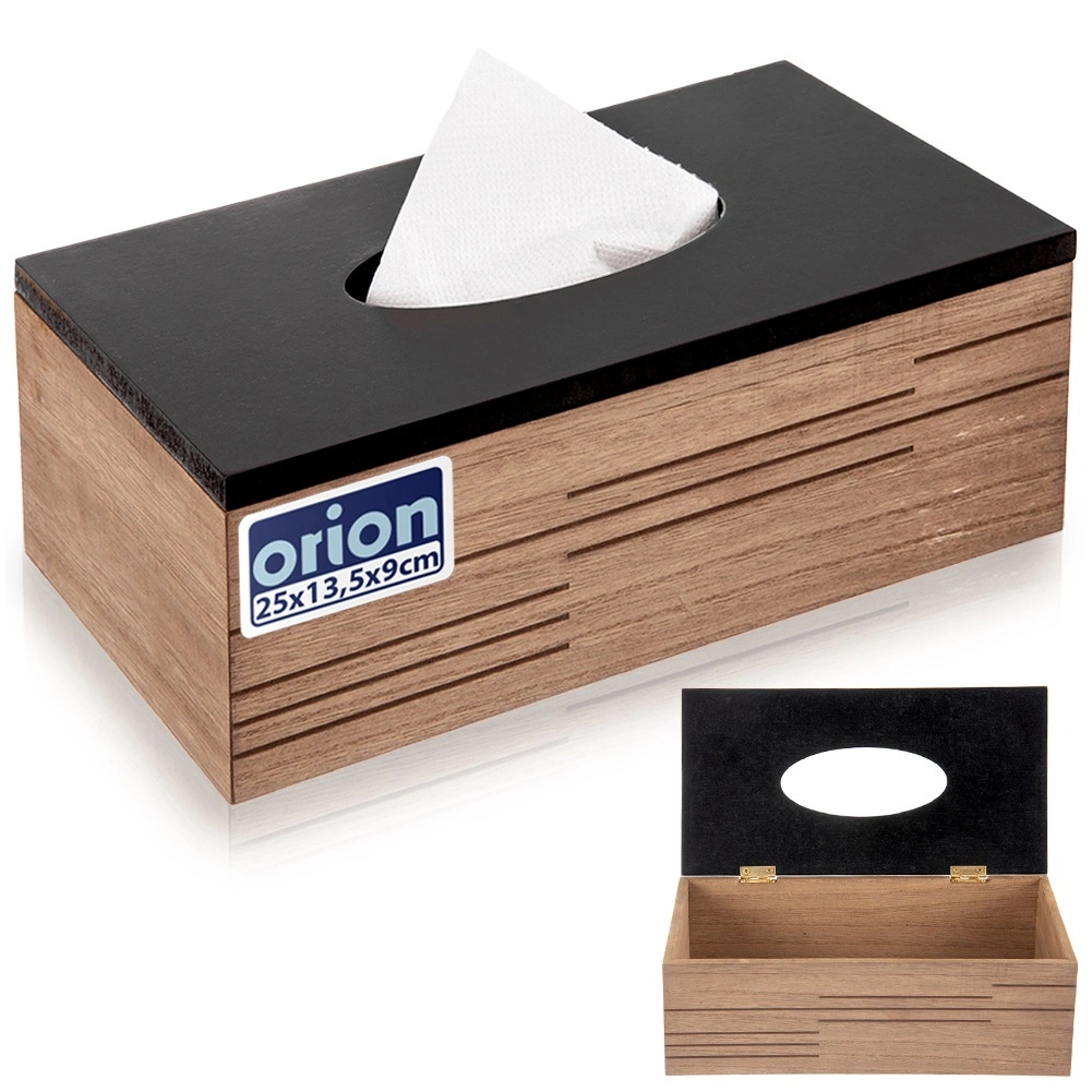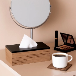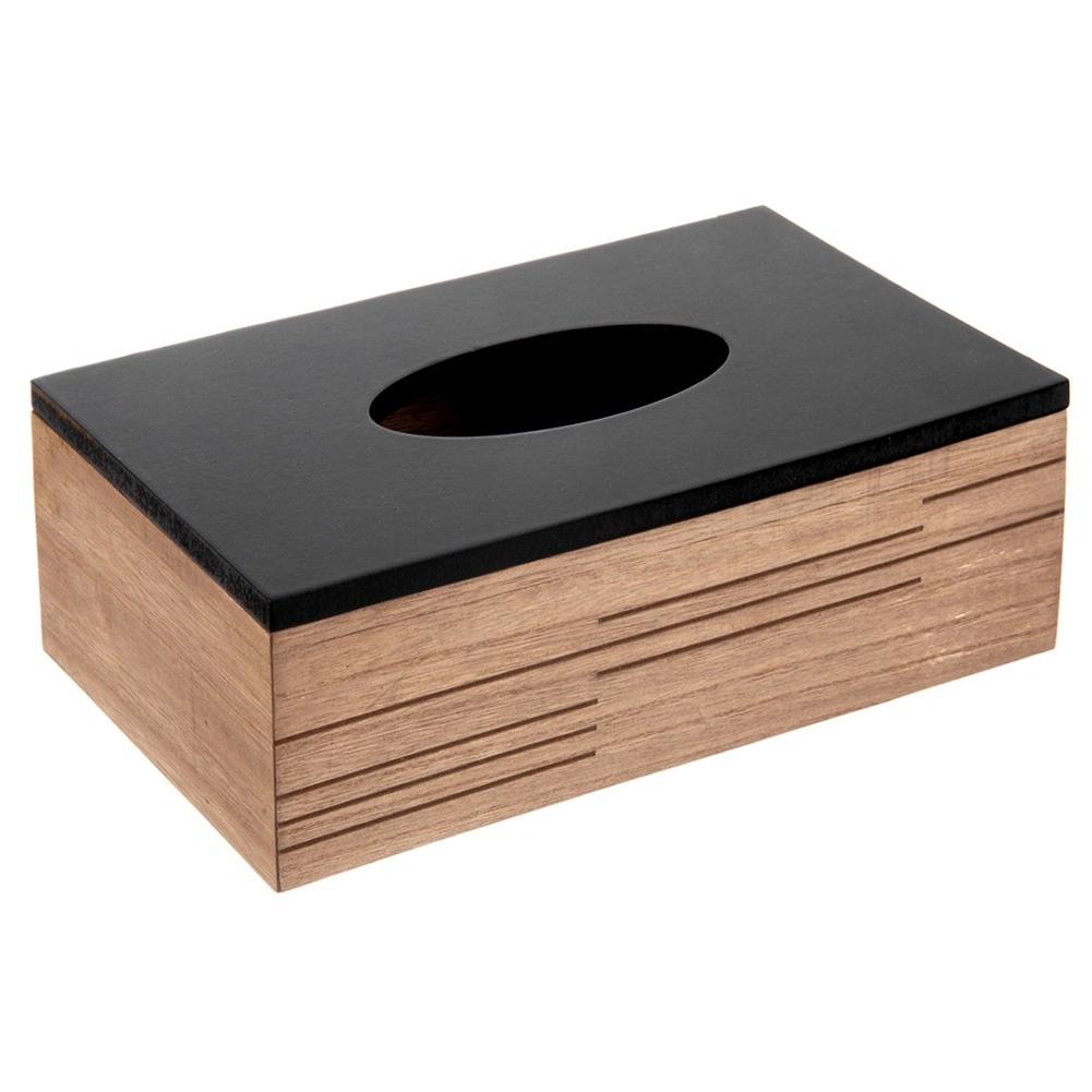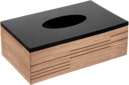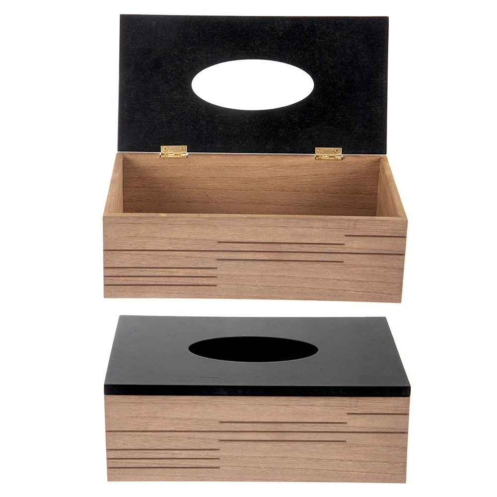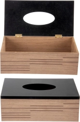 Stylové dřevěné tělo s moderními drážkami a černým víkem promění obyčejné kapesníky v designový doplněk.