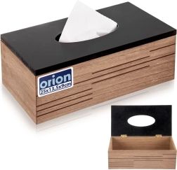Stylový box na papírové kapesníky Line kombinuje teplý vzhled dřeva s matně černým víkem a promění běžnou krabičku v elegantní doplněk. Díky rozměrům 25 × 13,5 × 9 cm skryje standardní balení kapesníků a zachová čistý vzhled prostoru.