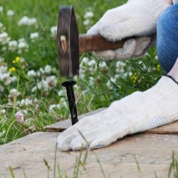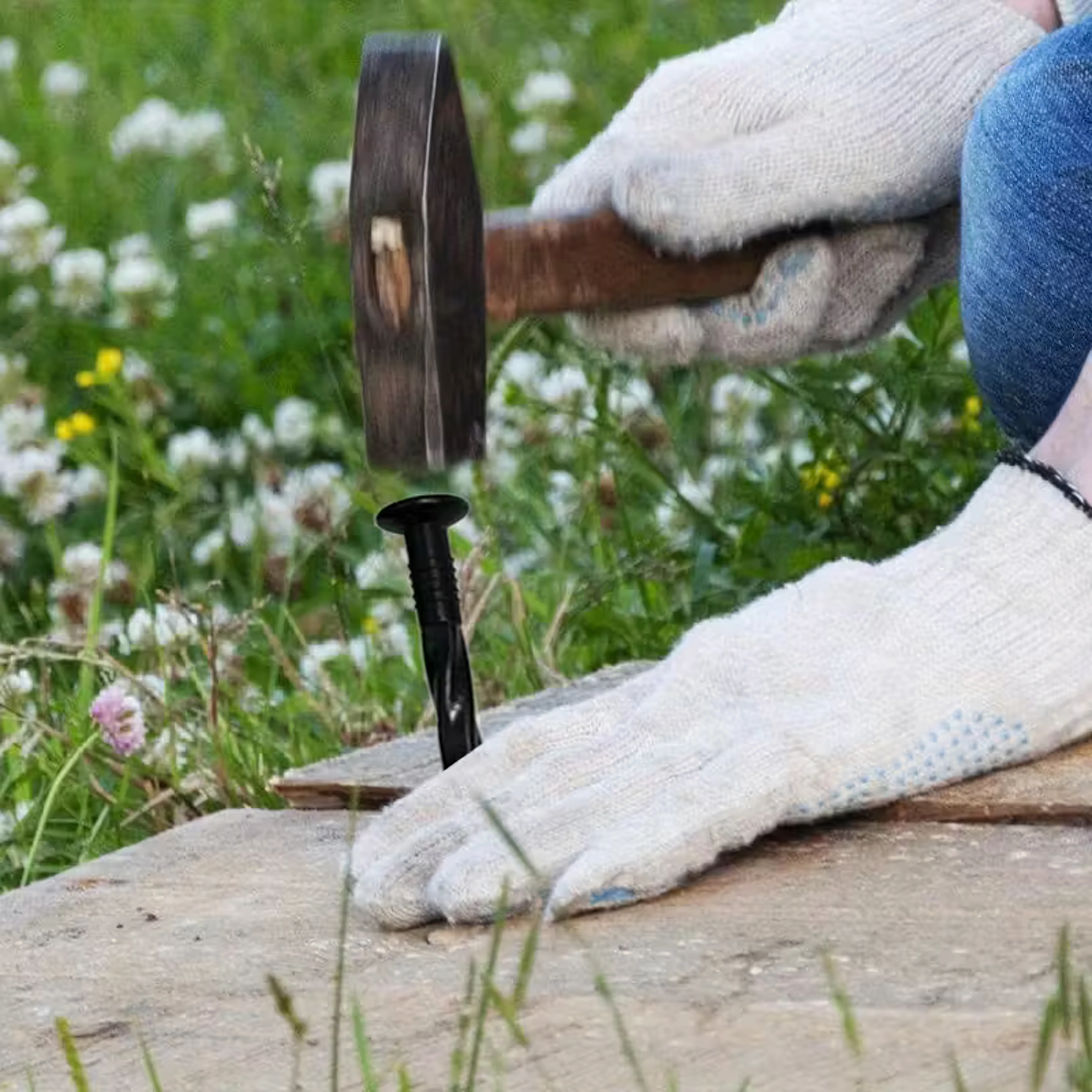 Široká hlava umožňuje pohodlné zatloukání a bezpečné vytažení při přemístění.