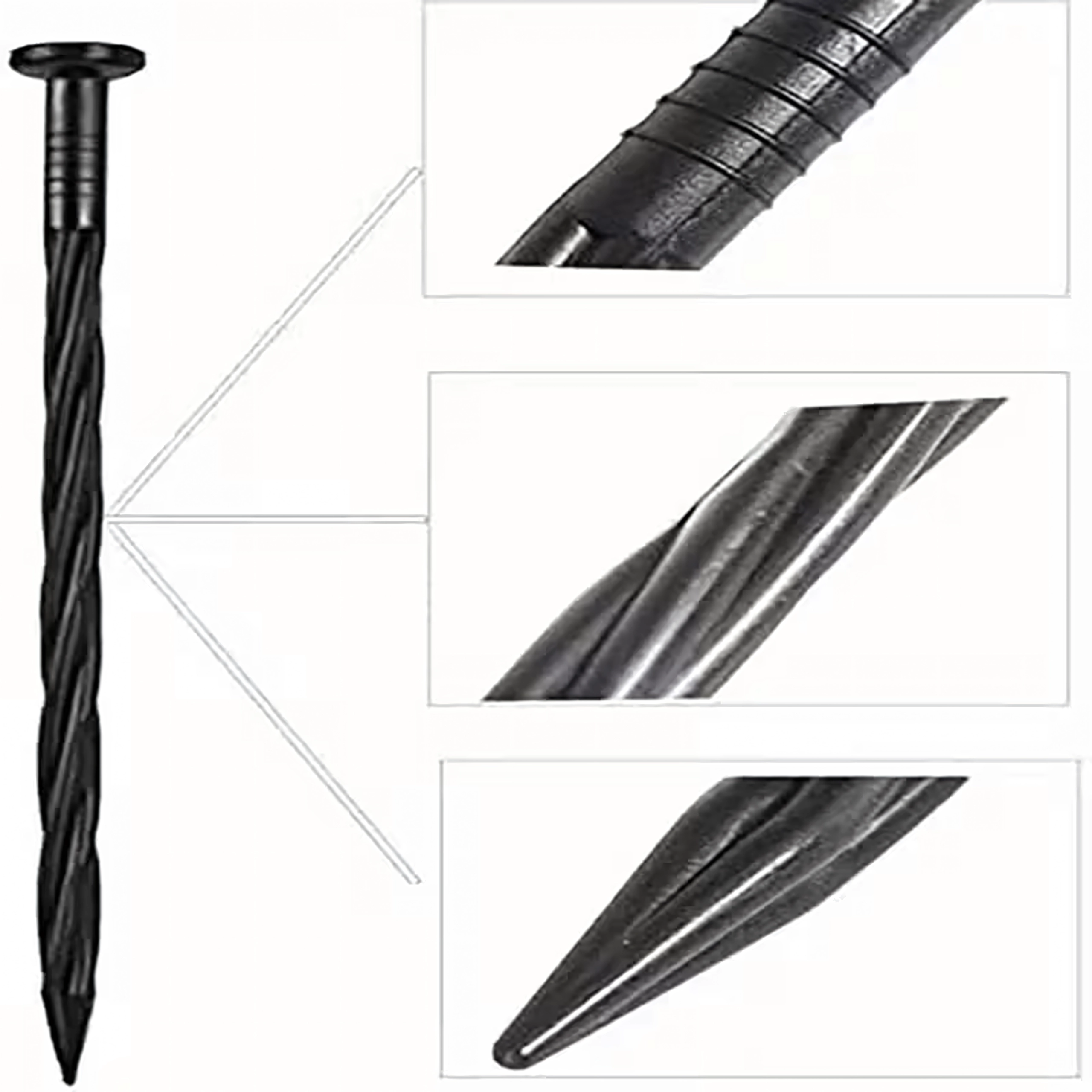 - Spirálový/twistovaný pro lepší držení v půdě