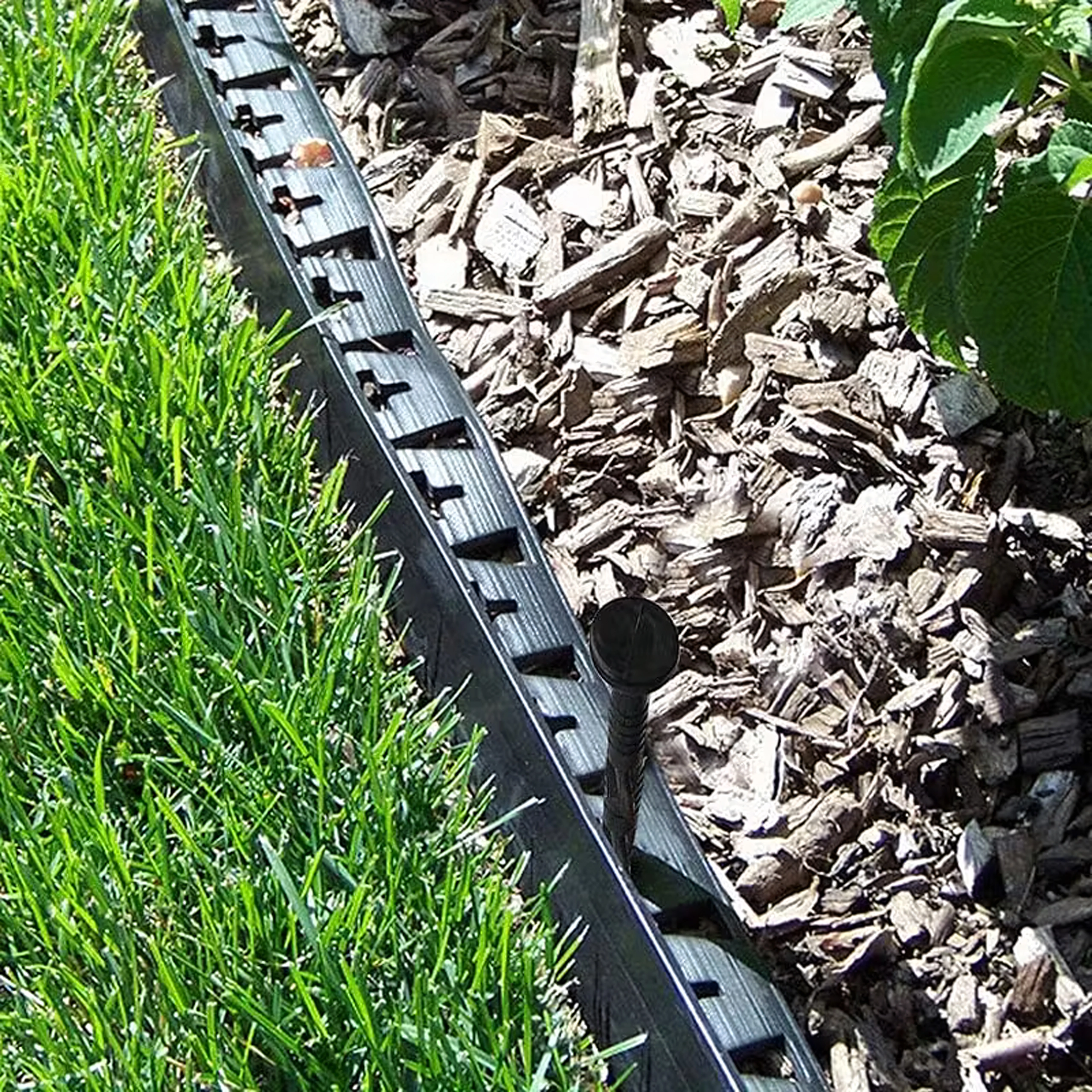 Twistovaný dřík a ostrý hrot se zavrtají do zeminy a drží obrubníky i textilie na místě bez posunu.
