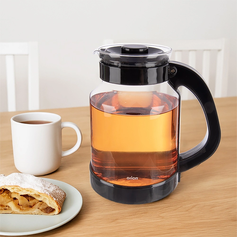 Skleněný džbán ORION o objemu 2,25 l je ideální pro přípravu horkých nápojů, jako je čaj, káva či bylinkové nálevy, i pro servírování studených nápojů, šťáv a vody. Transparentní tělo umožňuje snadnou kontrolu množství a síly nápoje, zatímco víčko chrání obsah před prachem a pomáhá udržet teplotu.