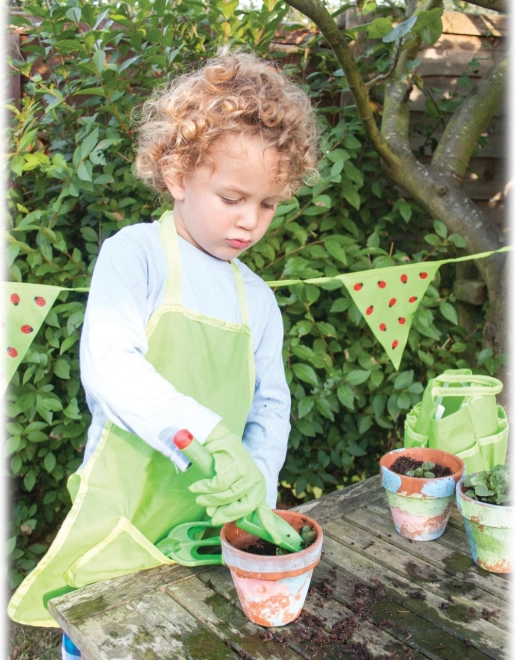 Měkká bavlněná látka je šetrná k dětské pokožce a umožňuje dlouhé a pohodlné používání při hrách i práci na zahradě.
