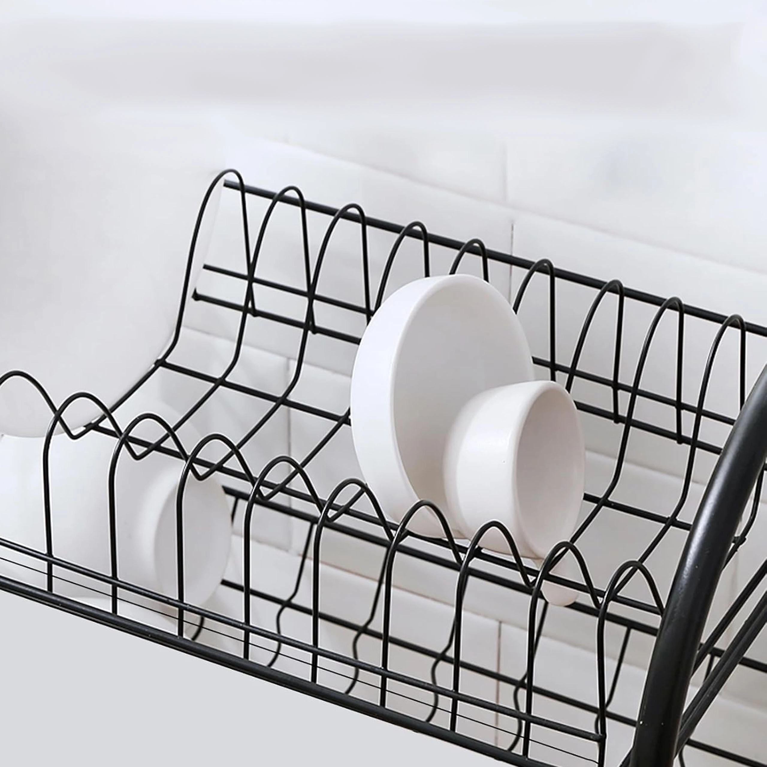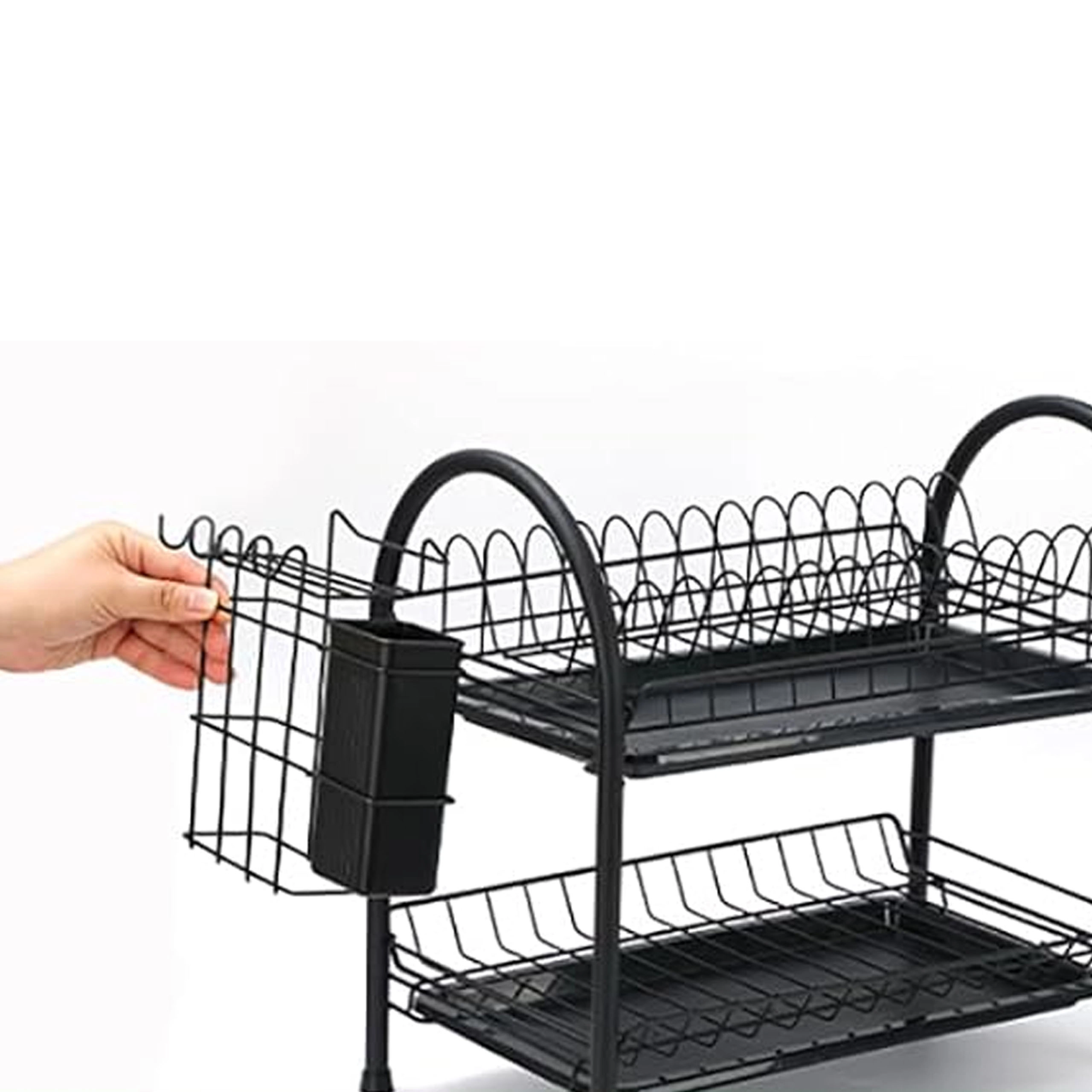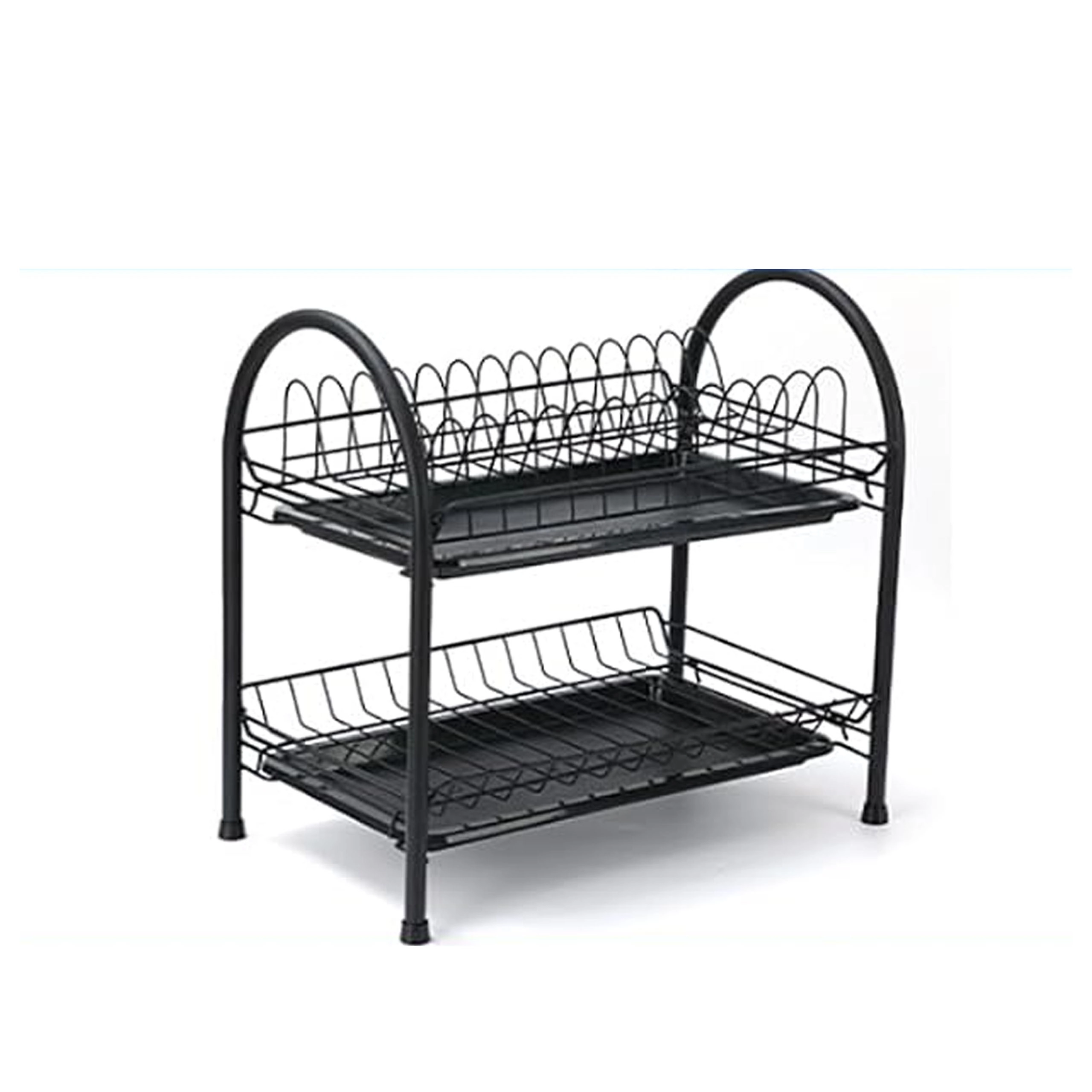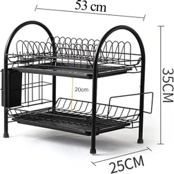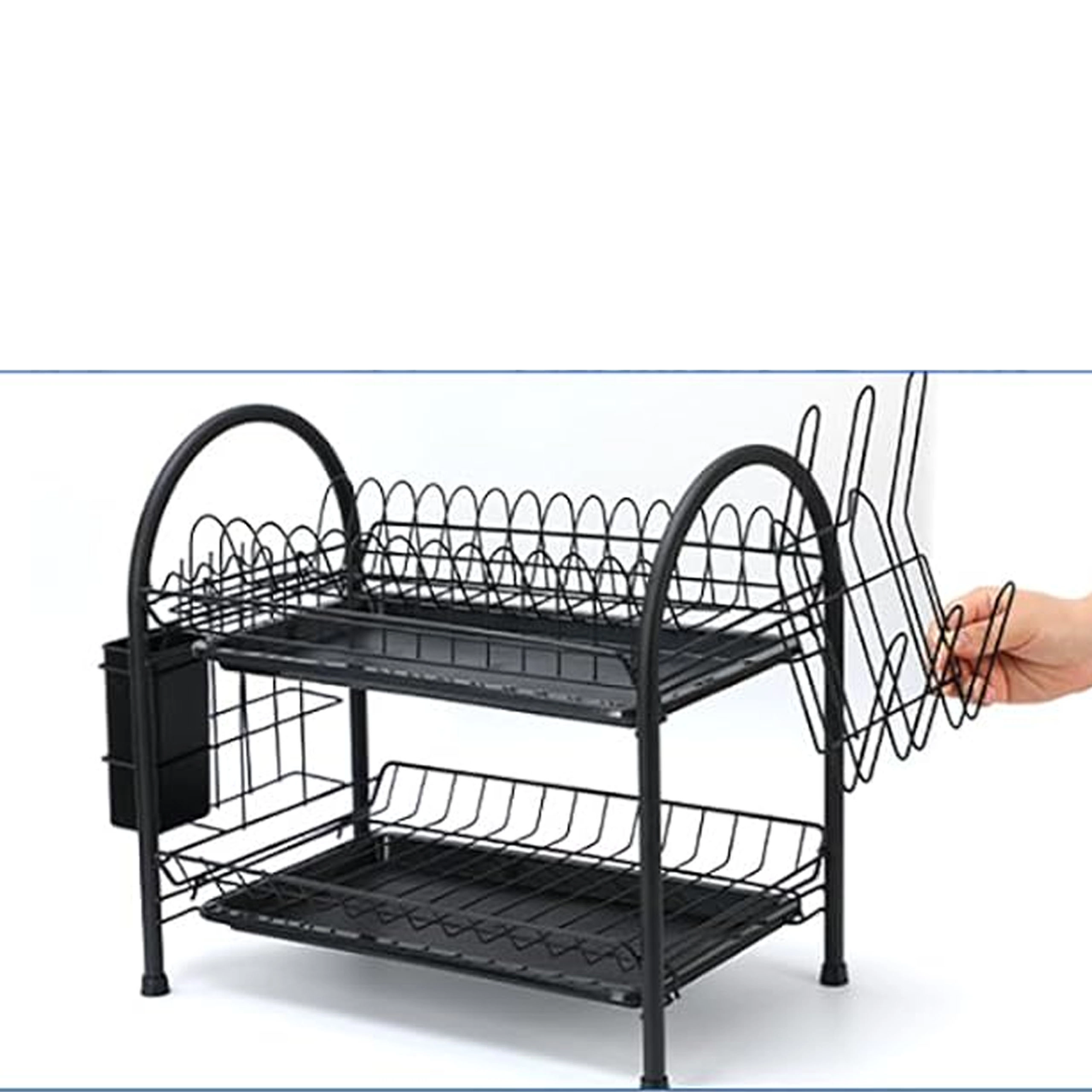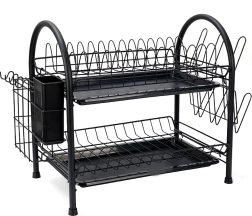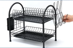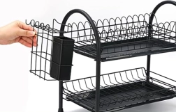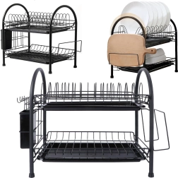 Praktický dvoupatrový odkapávač na nádobí z odolného kovu v elegantní černé barvě nabízí velkou kapacitu, stabilní konstrukci a odnímatelné odkapávací tácy pro suchou a čistou pracovní desku. Díky dvěma úrovním efektivně usuší talíře, misky, sklenice i příbory a udrží kuchyň přehlednou.