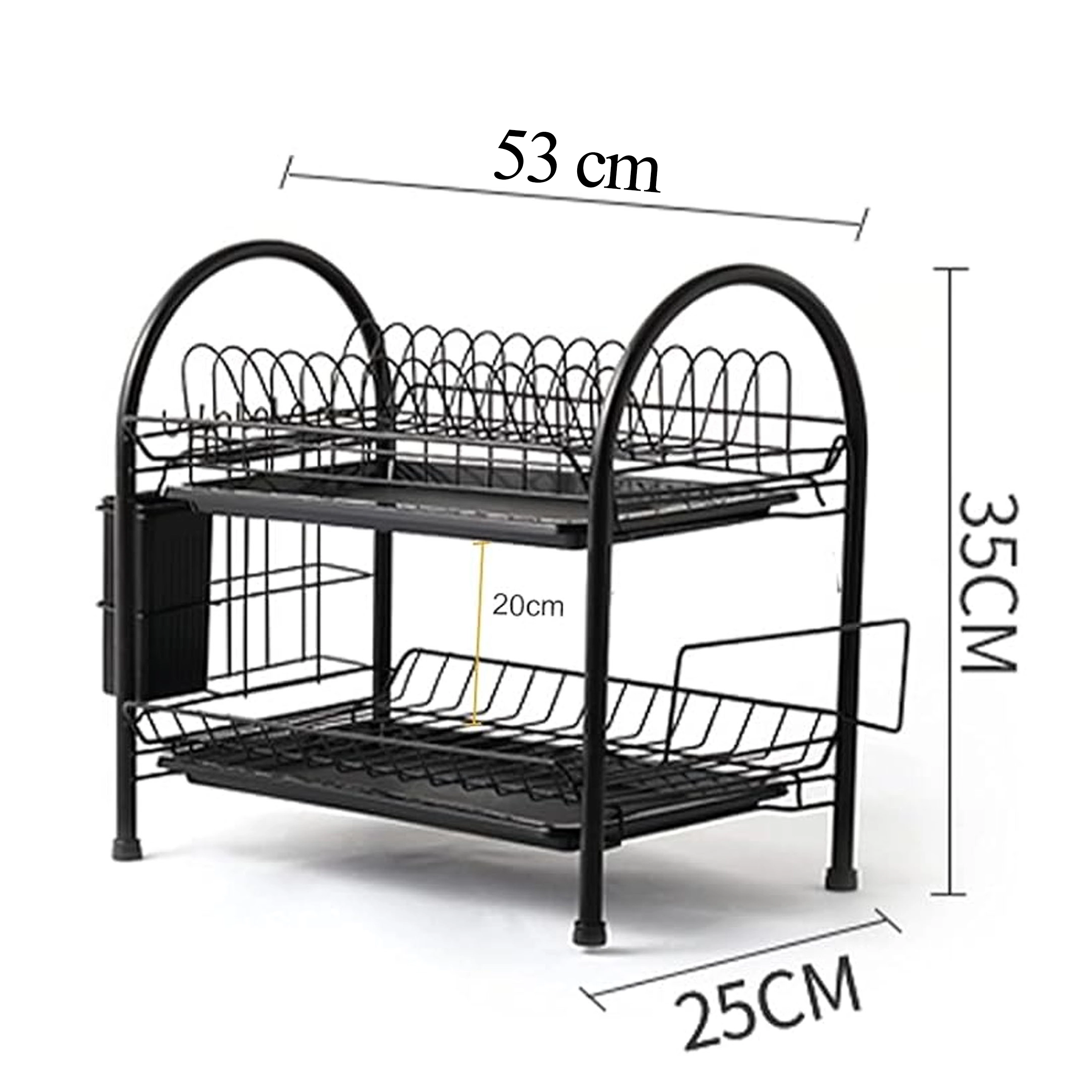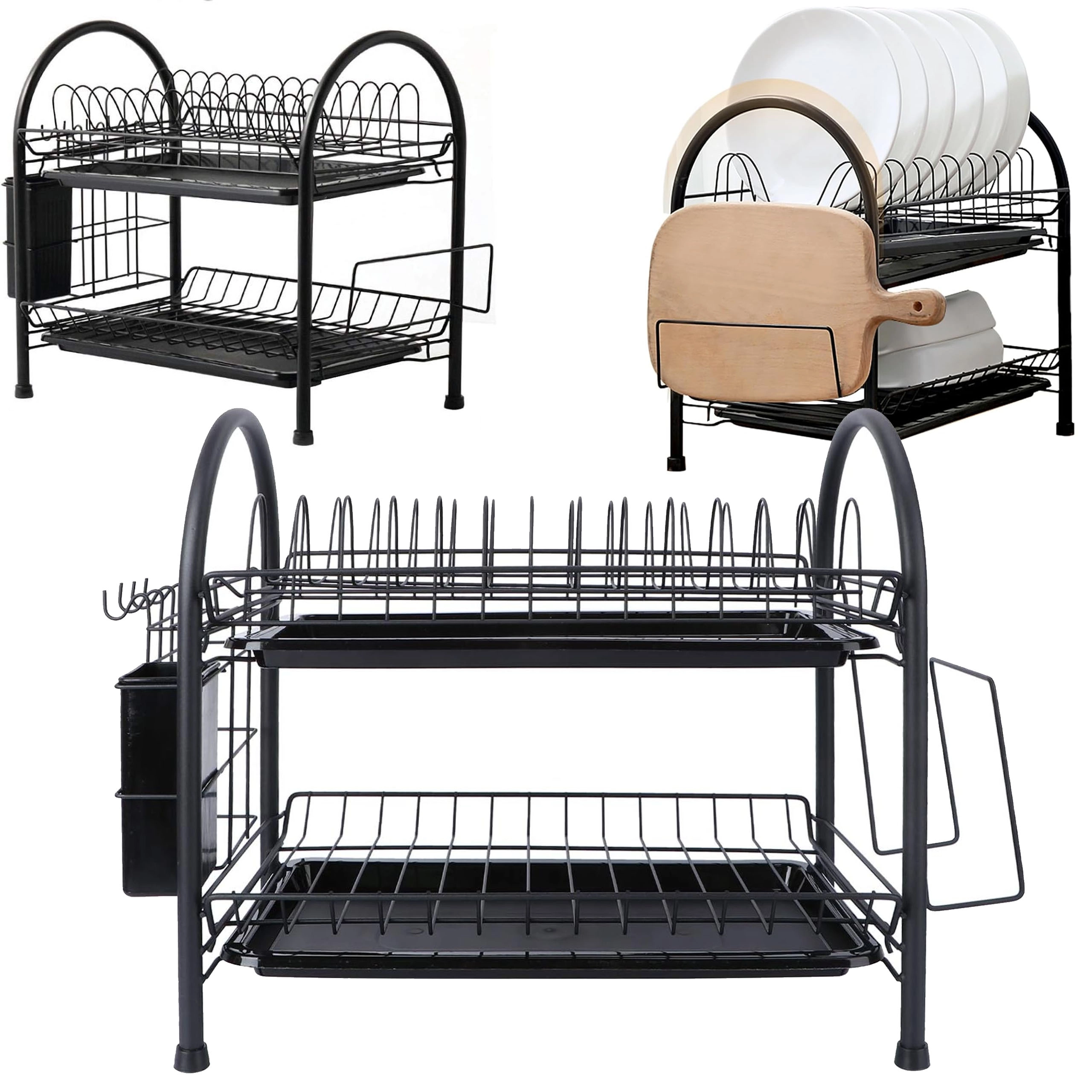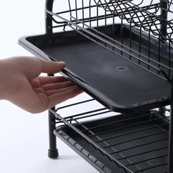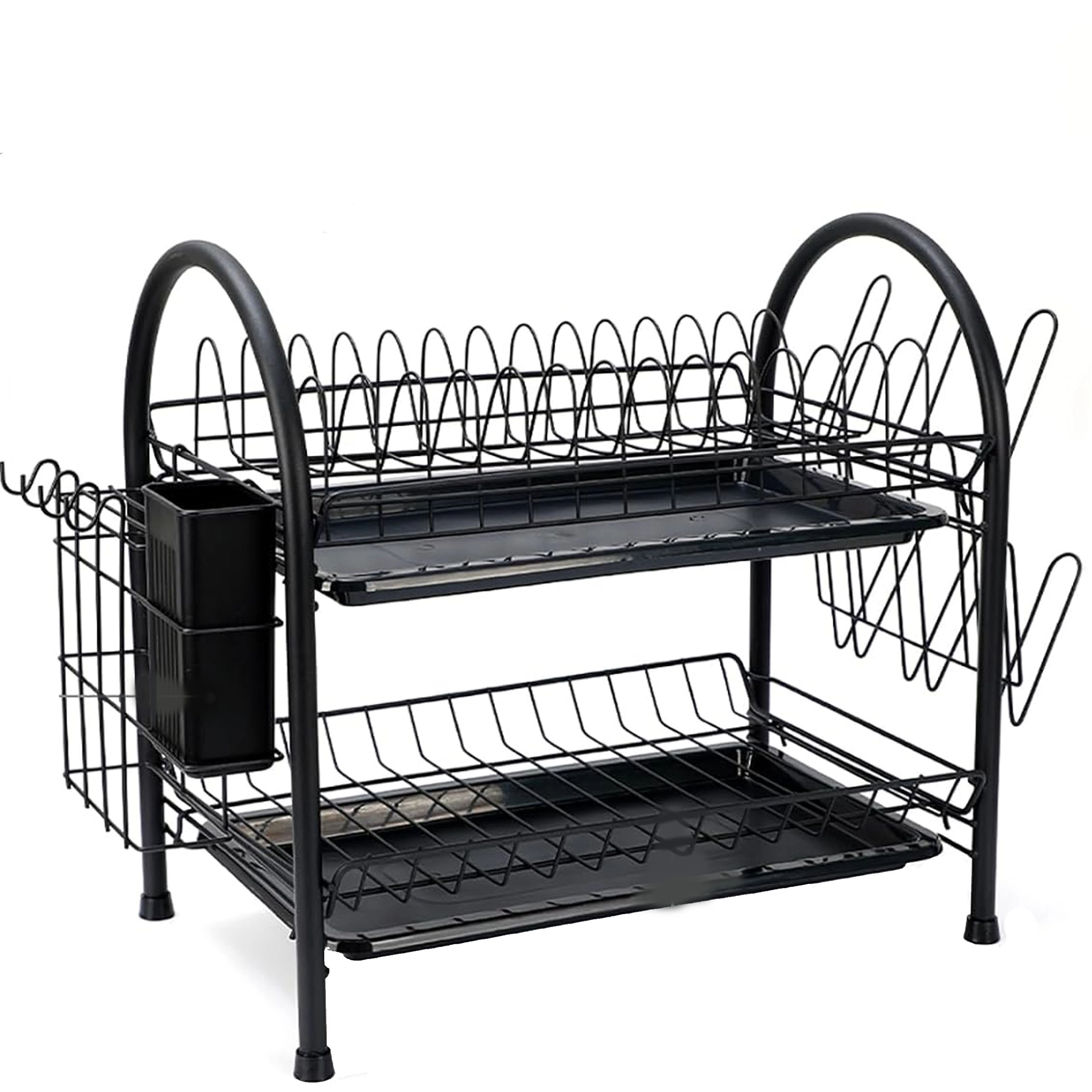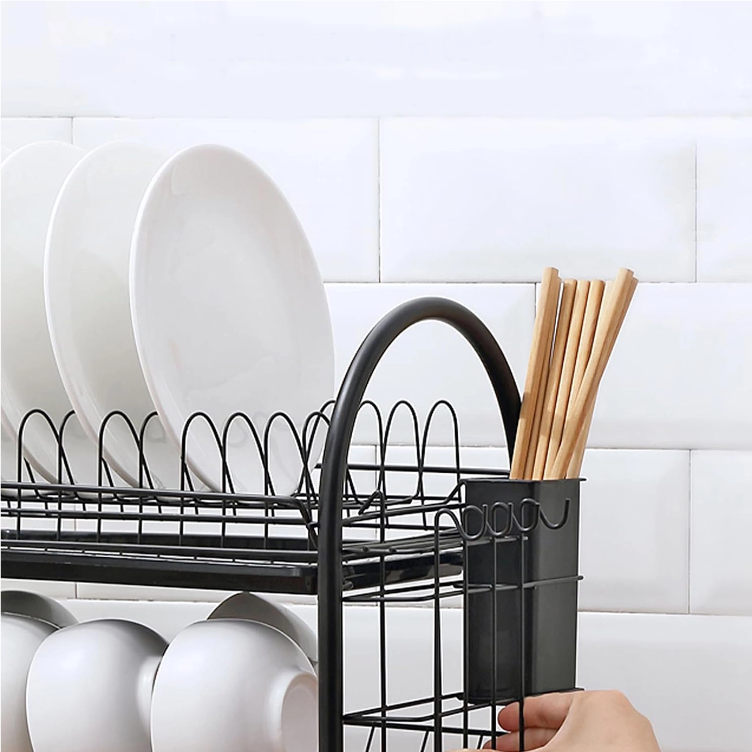 Praktický dvoupatrový odkapávač na nádobí z odolného kovu v elegantní černé barvě nabízí velkou kapacitu, stabilní konstrukci a odnímatelné odkapávací tácy pro suchou a čistou pracovní desku. Díky dvěma úrovním efektivně usuší talíře, misky, sklenice i příbory a udrží kuchyň přehlednou.