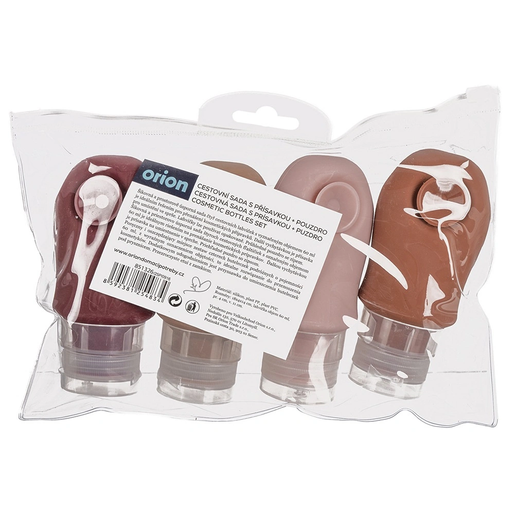 Cestovní silikonové lahvičky s přísavkami v pouzdře, 5dílná sada