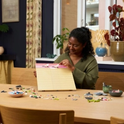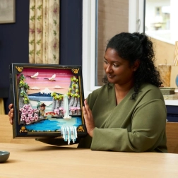 Dílo je zasazené do stylového černého 3D rámečku a lze jej zavěsit na zeď pomocí háčku nebo postavit na rovnou plochu. Součástí je přehledný návod, který vás provede krok za krokem, takže si užijete meditativní stavitelský zážitek i výsledek, který ozdobí váš interiér.