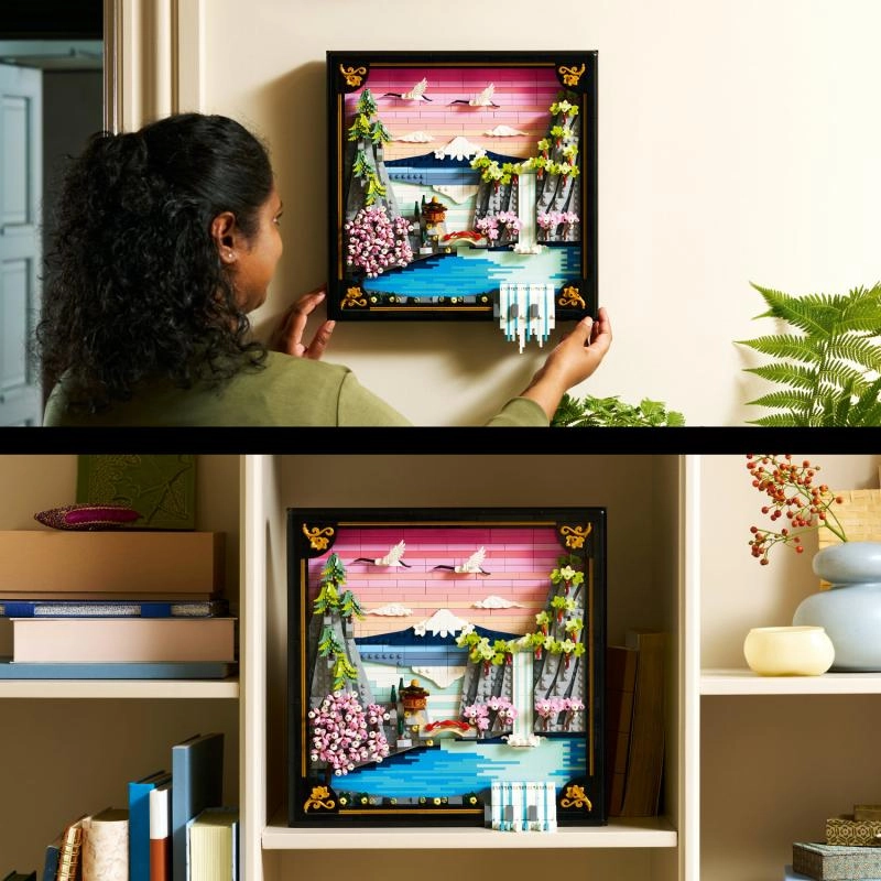 Ponořte se do světa klidu a estetiky s uměleckou stavebnicí pro dospělé, která vzdává hold směru ukijo-e a kráse japonského jara. Z 1 892 dílků poskládáte detailní scenérii s horou Fudži, čajovnou, mostem, vodopádem, létajícími jeřáby mandžuskými, javorem „Sango-Kaku“ a japonskými pajehličníky. Vodopád chytře přetéká přes okraj rámečku – při zavěšení efekt padá přes rám, při postavení jej upravíte tak, aby plynul po podložce.