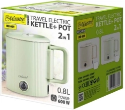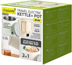 Ušetřete místo i čas s praktickým zařízením 2v1 – cestovní konvicí a elektrickým hrncem MAESTRO MR-009. Rychle uvaří vodu na čaj či kávu a zároveň umožní ohřívání jednoduchých pokrmů. Kompaktní tělo s dvoustěnnou izolací a nerezí 304 uvnitř je odolné, bezpečné a snadno se čistí.