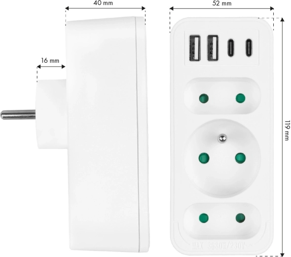 Zapojíte přímo do stávající zásuvky a rázem máte více výstupů i USB portů na jednom místě. Ideální do domácnosti, kanceláře či studentského pokoje.