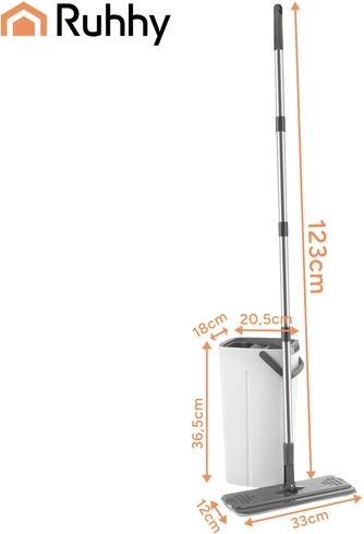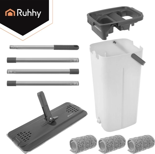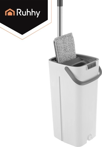 Už žádné mytí v zakalené vodě. Dvoukomorový systém RUHHY zaručuje, že podlahu vždy vytíráte čerstvou čistou vodou, zatímco nečistoty zůstávají v oddělené komoře. Integrovaný bezdotykový ždímací mechanismus rychle odstraní přebytečnou vodu i vlasy a prach z návleku, takže podlaha schne rychleji a bez šmouh.