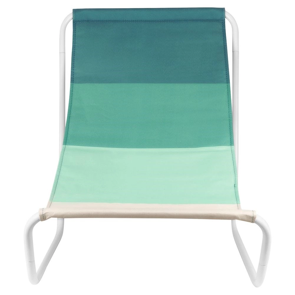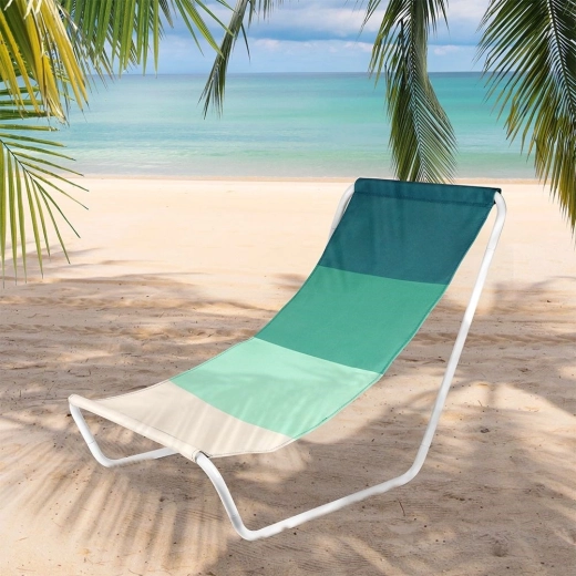 Toto pohodlné plážové lehátko nabízí skvělý relax díky ergonomicky tvarovanému sedáku a prodyšné textilii v odstínech zelené. Bílý kovový rám je lehký a současně pevný, takže lehátko snadno přenesete a přitom získáte stabilní oporu pro odpočinek.
