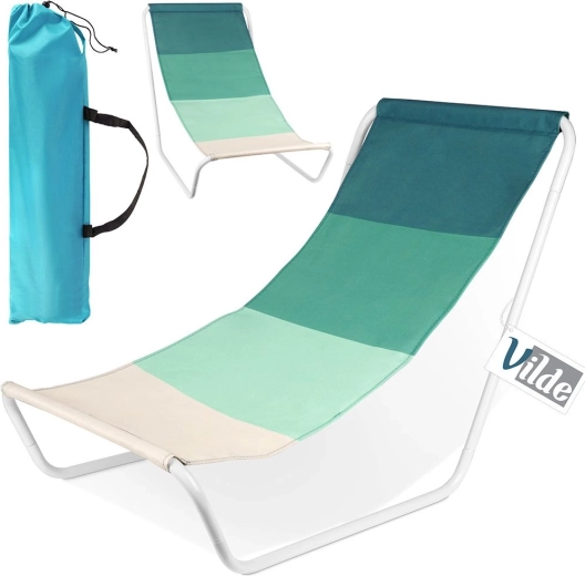 Užijte si pohodlí kdekoli s tímto lehkým a skládacím plážovým lehátkem v zelených odstínech. Stabilní kovová konstrukce v bílé barvě, odolná polyesterová textilie a snadné přenášení včetně tašky dělají z lehátka ideální volbu na pláž, zahradu i balkon. Maximální nosnost 90 kg, rozměry sedáku 86 × 51,5 cm, šířka látky 44,5 cm.