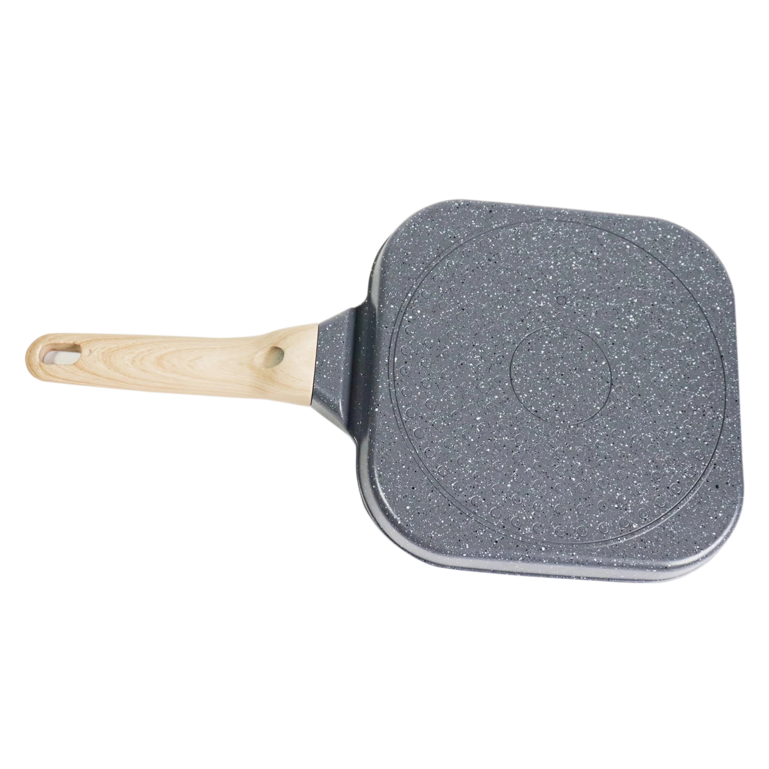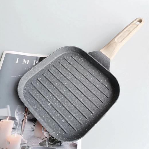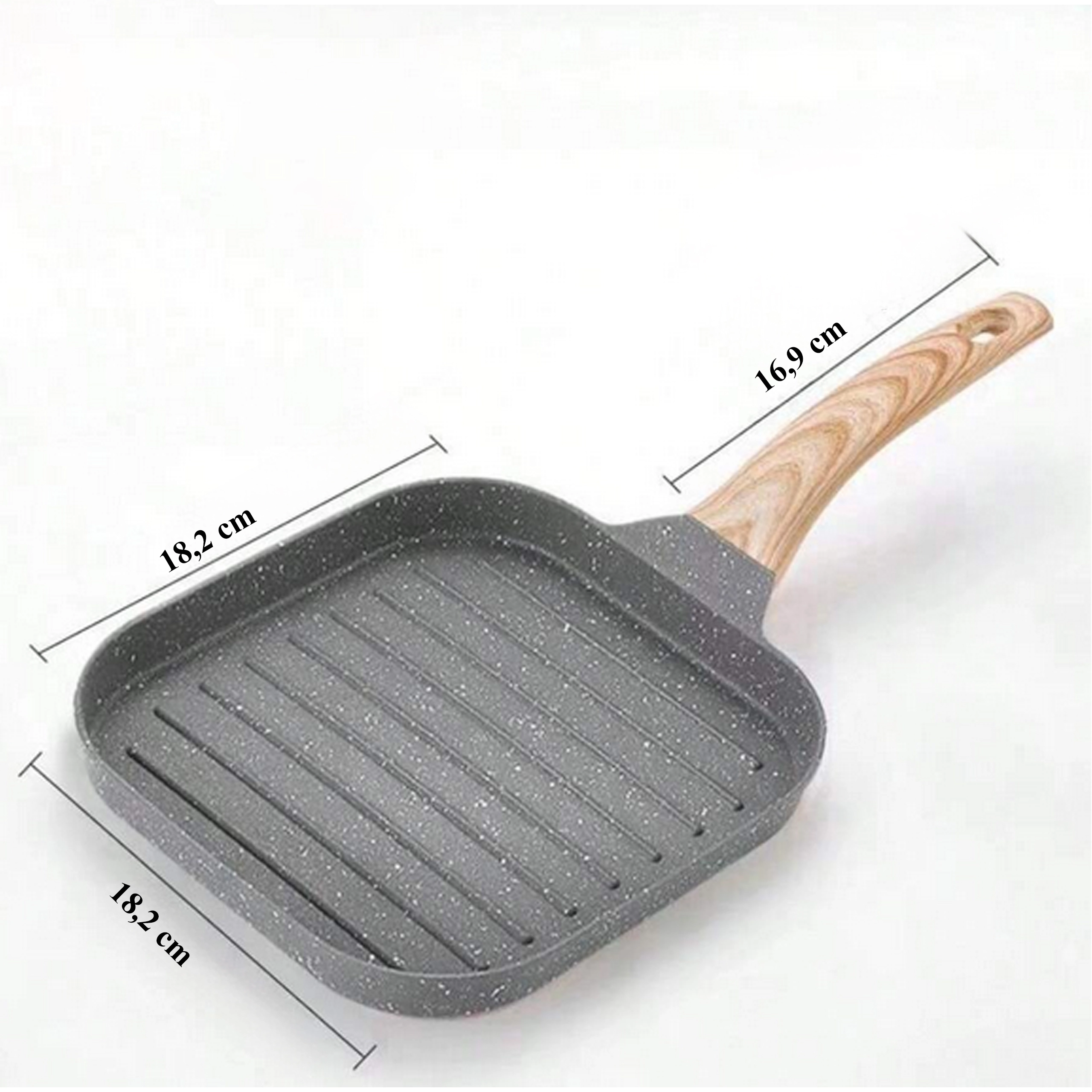 Tato univerzální grilovací pánev je ideální pro steaky, ryby i zeleninu. Robustní čtvercový tvar nabízí velkou plochu na smažení, zatímco vyvýšené rýhování zajišťuje intenzivní kontakt s teplem a krásné grilovací pruhy. Nepřilnavý povrch umožňuje vaření s menším množstvím oleje a usnadňuje údržbu.