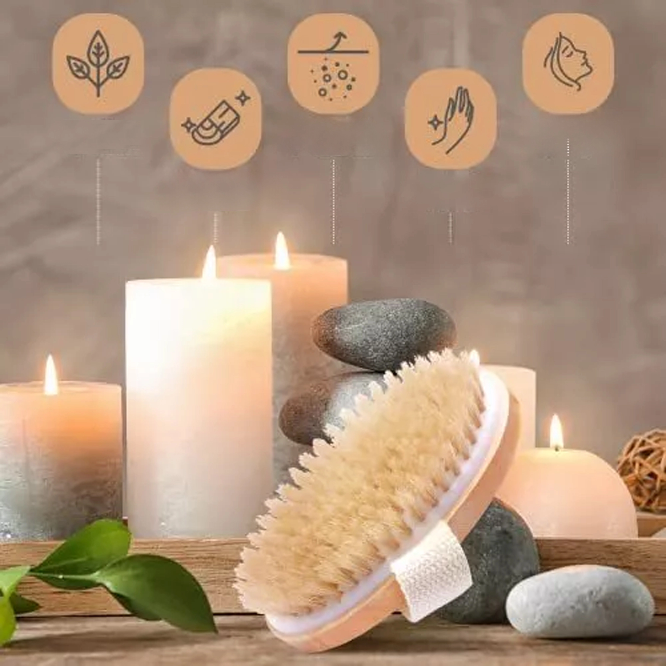 Dopřejte si domácí SPA s univerzálním masážním kartáčem 2v1 pro suché i mokré použití. Husté přírodní štětiny jemně, ale účinně odstraňují odumřelé buňky, podporují mikrocirkulaci a pomáhají vyhlazovat pokožku. Ergonomický popruh na ruku zajistí jistý úchop a pohodlné používání po celém těle. Pro hladší, zářivější a pevnější pokožku každý den – ideální pro suché kartáčování, jemný peeling i anticelulitidní masáž.